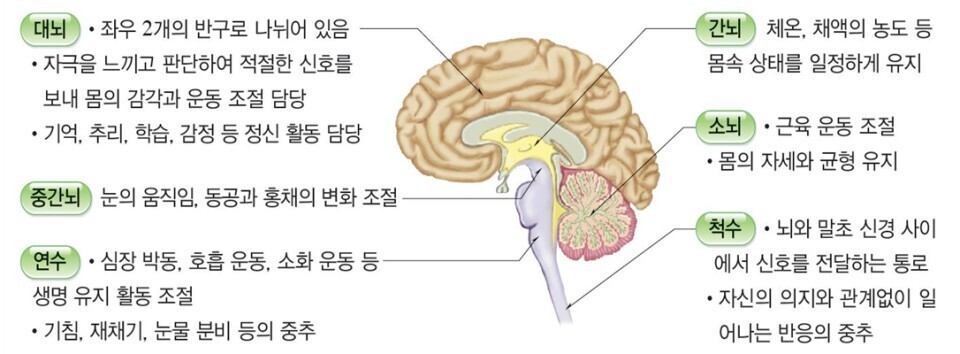 감각기관에서 받아들인 자극을 전달하거나, 자극을 판단하여 적절한 반응이 나타나도록 신호를 전달하는 체계