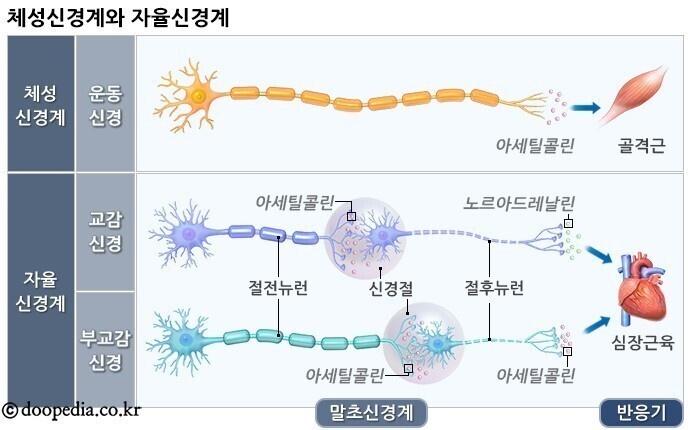 ⦁ 수의근 ⟶ 체성신경계의 영향