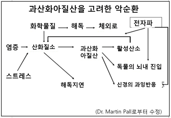 또한 전자파에 의해 신경의 과잉반응이 나오면, 화학물질 과민증으로 과산화아질산염이 나오는 것과 똑같은 문제가 나오는 것이 아닐까 생각됩니다.