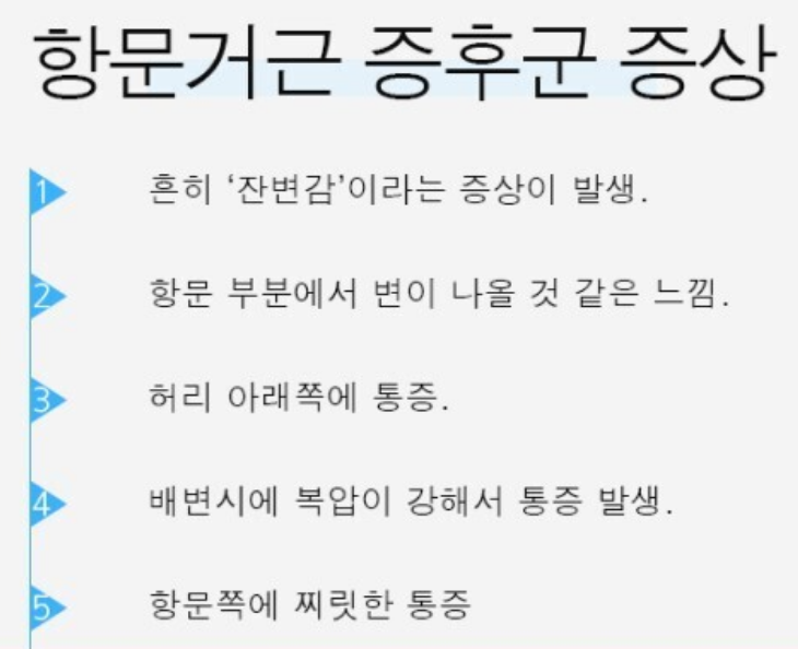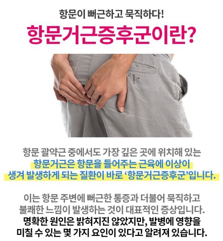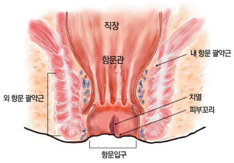 괄약근에 무리가 가서 생기는 일종의 항문근육통이라고 보면 된다.
