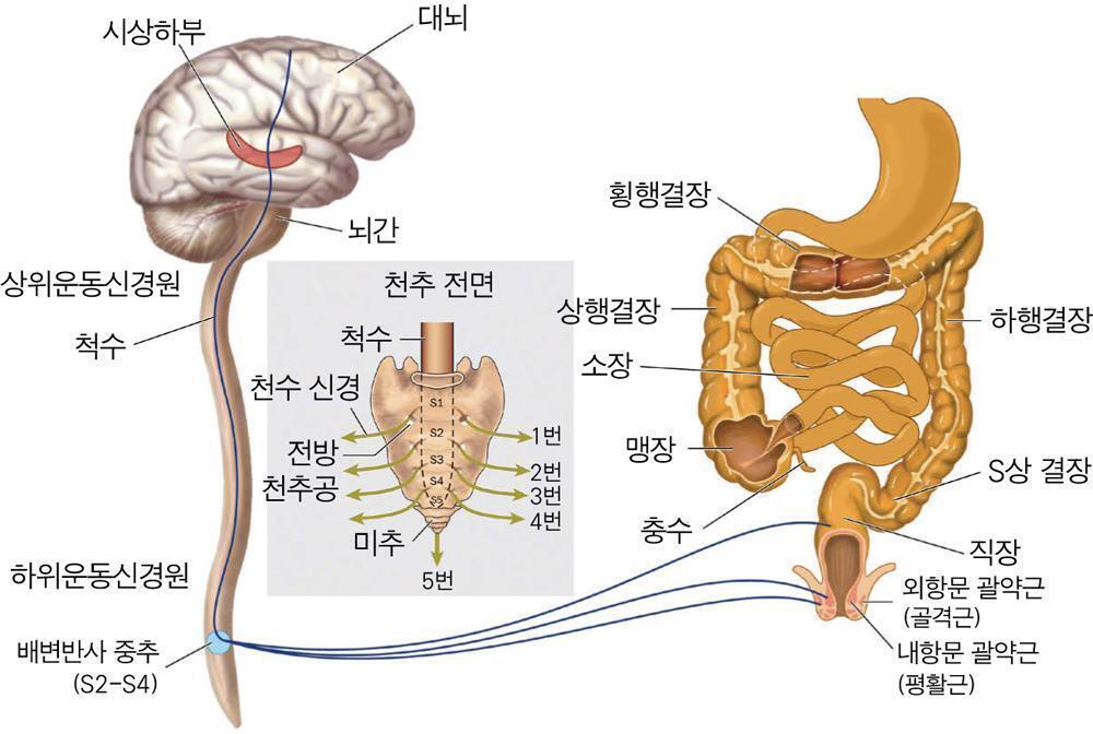 ⦁ 외항문 괄약근(조임근) ⟶ 수의근(자신의 의지에 따라 움직일 수 있는 근육)
