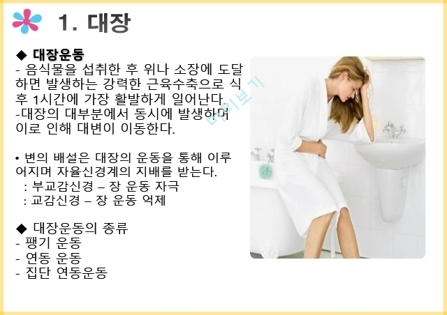 1. 배변 반사를 유발하고, 배변 욕구를 강하게 유발한다.