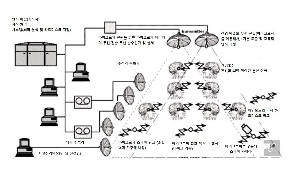 양방향 전자식 Brain Link는 CIA/NSA 직원을 위한 최고의 통신 시스템이 되었습니다. 원격 신경 모니터링(RNM, 인간 두뇌의 생체 전기 정보 원격 모니터링)은 궁극적인 감시 시스템이 되었습니다.