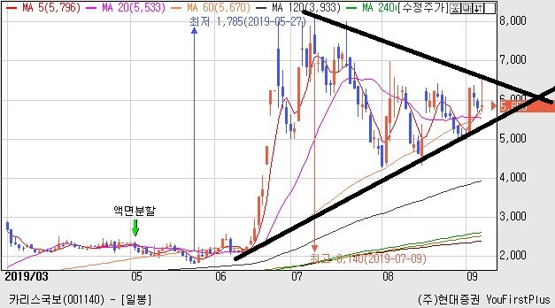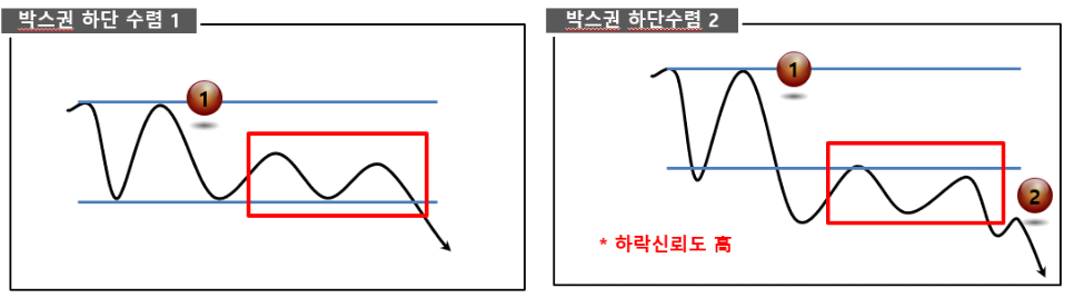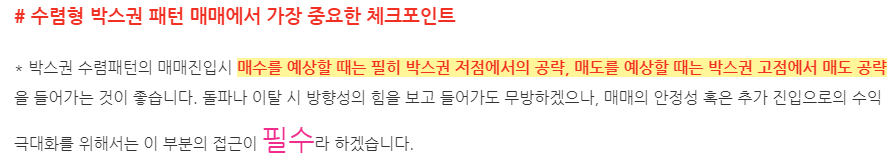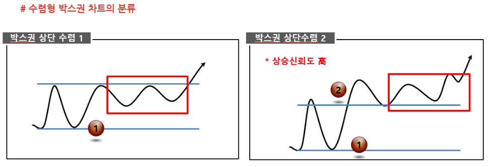 챠트는 후행이기 때문에 지나고 나서 저점 및 고점을 확인하고 추세를 보며 주가를 예측하기도 합니다만 정말 겪어보면 50대 50입니다. 세력이 움직이는 종목에는 삼각수렴챠트라는 것이 만들어지게 되는데 이것도 수렴하다가 악재에 급락할 염려도 있기에 이것을 믿고 매수했다가는 큰 손실을 보기도 하죠. 그러나 밑변이 좀더 가파를 때 급등할 확률이 더 많지요. 아래는 카리스국보 오늘자 챠트입니다. 삼각 수렴 중인데 아래 변이 좀더 가파르네요. 누르는 세력이 등장했기에 요런 모습이 나오죠. 왜 누를까요? 강력한 호재가 내재해 있을 확률이 있기 때문으로 풀이됩니다. 오늘도 러시아발 400억 수주 호재에 크게 오를듯하다가 내리 꽂으면서 긴 피뢰침을 연출했는데요. 어떤 전문가는 피뢰침이 길수록 좋다라고 말하는 이도 있죠. 이는 세력의 매집으로 봅니다. 조만간 대형호재에 의해 두세달 응축된 힘으로 치고 나가게 될 겁니다. 이런 경우 악재가 터지면서 급락하는 경우도 있으나 카리스국보에는 호재가 더 많다고 봅니다. 그동안 발표된 시행중에 있는 일정을 근거로 추정해 보건대 대형호재가 곧 발표될 것으로 생각됩니다. 물론 생각하던 호재가 악재로 둔갑하게 될지도 모릅니다. 예상한 바대로 흘러가지 않았을 경우인데 이글은 매수를 권하는 글이 아닙니다. 각자 분석 후에 자신의 책임하에 매수매도를 하도록 합시다. ---------이하 펌 박스권 차트 수렴패턴의 방향 ◆◆수렴형 패턴 - 향성을 모두 생각해야하는 경우가 대부분이며, 휩쏘 등의 움직임이 가장 많이 나타나는 구간이기도 하다. - 수렴형 패턴은, 가격이 움직이면서 방향성이 나오기 전후로 가격의 변동성을 죽이면서 앞으로 나갈 방향이 결정되기까지 대기하는 상태로, 보통 박스권의 형태(박스권 안 삼각 추세 포함)로 나타난다. - 수렴형 패턴의 장점 변동성이 강한 시기가 아니기에 매매진입을 하기 수월하며, 수렴을 마무리하고 방향이 나올 시 예측한 방향대로 방향이 나온다면 단가가 엄청나게 좋은 상황에 놓이게 되므로 홀딩하기도 좋으며, 방향성 확신 시 불타기를 진행하기도 좋다. 또한 수렴을 마무리한 후 나오는 방향성은 크고 강하게 나타난다. - 수렴형 패턴의 단점 수렴형 패턴은 반전형과 지속형의 패턴으로 나눠지나 그 방향성의 신뢰도는 강하지 못하다. 수렴후에는 큰 변동성이 나올수 있으므로 기계적 손절을 잡아두고 진입해야 한다. 돌파나 이탈 시에 휩소 등이 많이 나오므로 방향성이 확실히 정해지기 까지는 주의가 필요하다. 박스권 상단 수렴패턴은, 박스권 내 상단에서 수렴형과 박스권 돌파구간에서 수렴형 차트로 나눌수 있다. 상승에 대한 신뢰도는 상단 돌파구간에서 수렴형 차트가 높다. 1번 자리에서 매수로 들어가고, 2번 자리에서 추가 여부를 판단한다. 박스권상단 수렴 2번의 경우, 박스구간이 정배열로 나오기 시작하는 경우가 많다. 박스권 하단 수렴은 기본적으로 하락 지속형으로 볼수 있다. 1번 동그라미에서 매도 진입을 하고, 2번 동그라미에서 추가 여부를 판단한다. 하락에서도 박스권 하단을 이탈한 구간에서의 횡보성 수렴의 경우 신뢰도가 높다. ********* 오늘도 만기주의 삼각은 돈이라는것을 오늘도 확실하게 보여드린 하루입니다.
