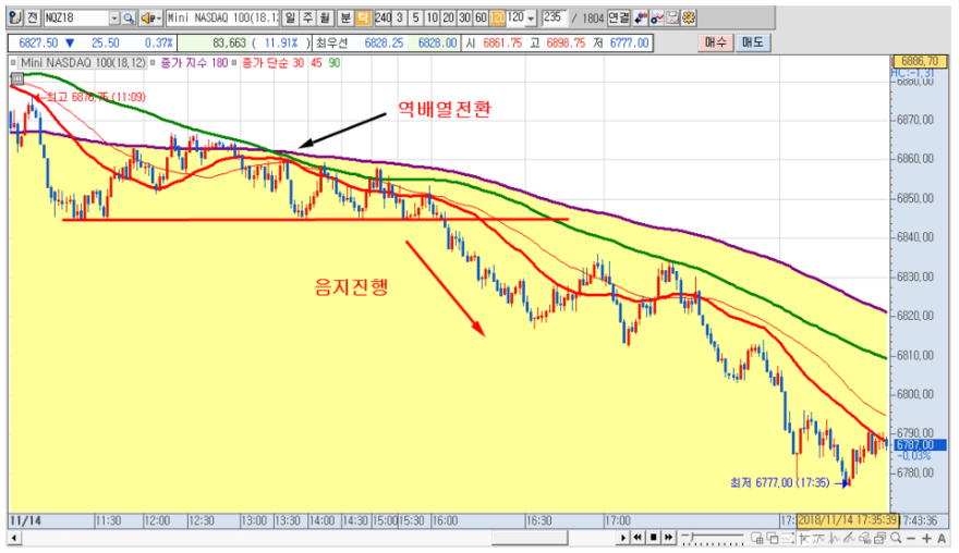 결제 지수를 181넘기 어렵다고 보고 181.40을 저항으로 아침 매도전략으로 출발. 시가 출발후 시가 위 반등 180.70위 매도 시황체결후 180이탈..저점 179.80 그러나 버텨보자, 욕심좀 내고. 단타 수익을 포기하고 크게 보다가 1회 손절매.