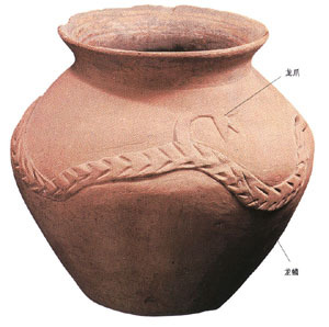 * 제가(齊家)문화 부조(浮雕) 용문 홍도 항아리:항아리 위의 부조 용문양은 몸의 비늘이 용과 같고 몸에 발톱이 하나 있다. 이 부조용문은 서북 지역에서 발견된 최초의 용 문양이다. * 벽옥룡(碧玉龍):속칭 “돼지 주둥이 옥룡”이라 하며 검은 녹색의 연한 옥으로 만든 것으로 현재까지 발견한 체형이 가장 크고 제작법이 가장 정교하며, 형태가 가장 진짜에 가깝고 연대가 가장 오래된 벽옥룡 모양이다. * 석가하 옥저룡(玉猪龍):석가하 문화에서 세 종류의 반룡(蟠龍)이 발굴되었는데 머리에는 뿔이 있고 얼굴에는 눈이 있으며 이것은 홍산(紅山)문화의 옥저룡과 앙소문화의 복양(濮陽) 방용(蚌龍)과 같은 것이며 중화 고룡(古龍)의 원형이다.