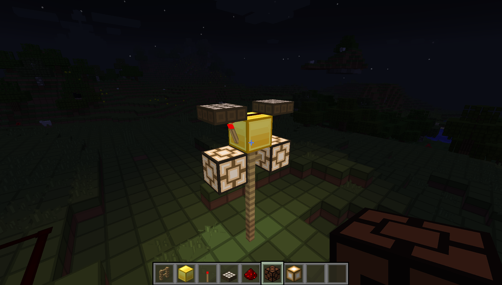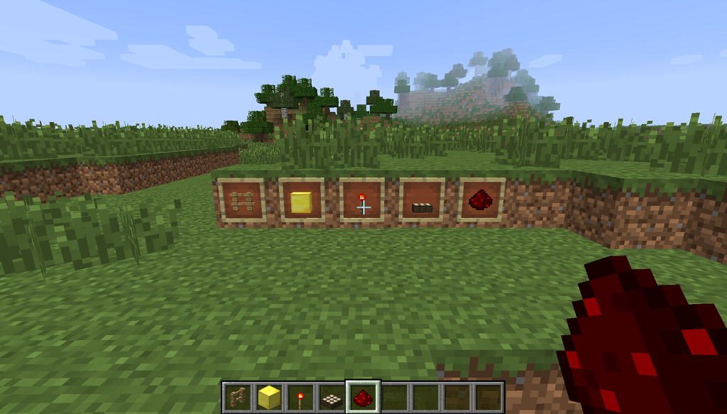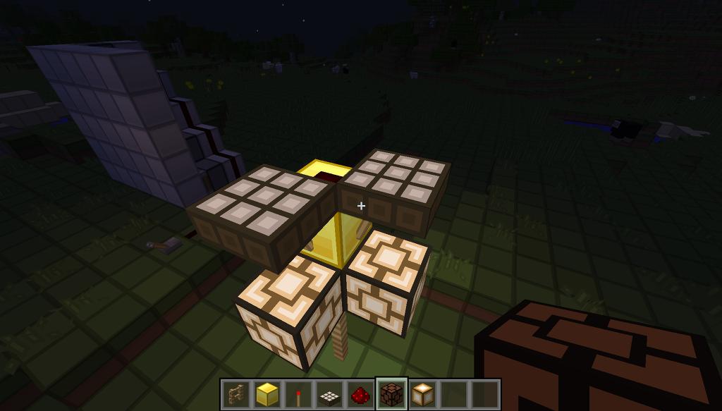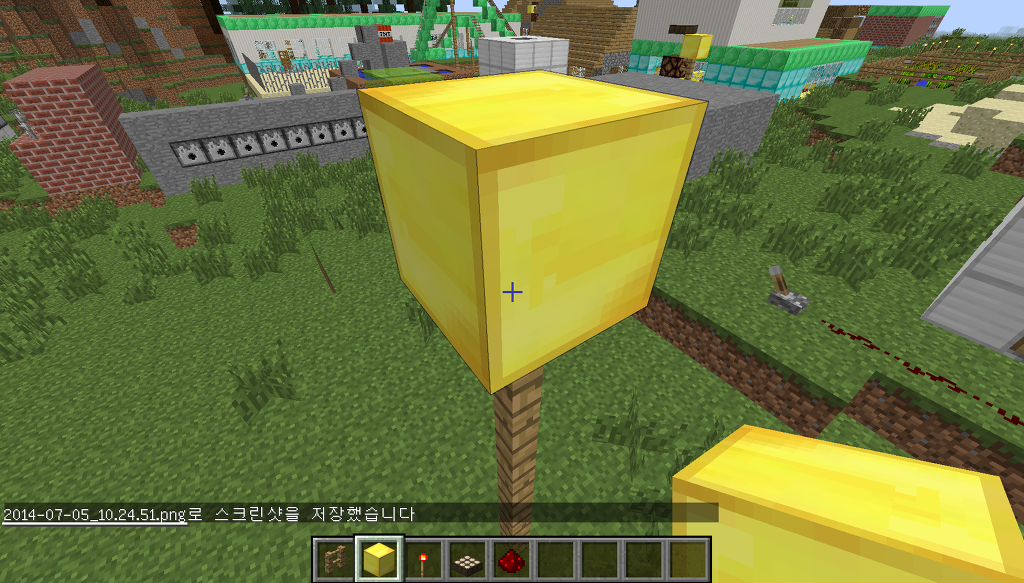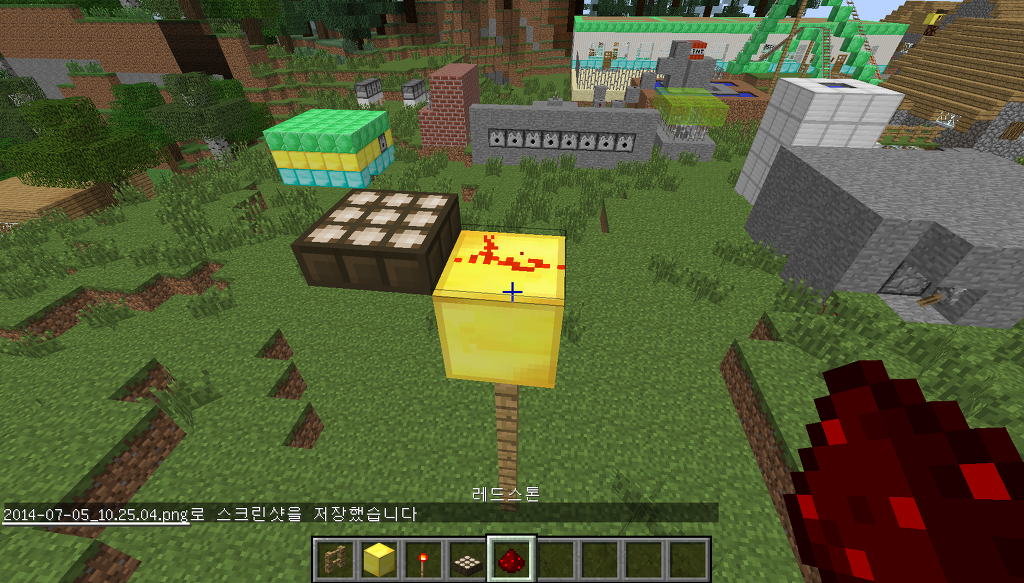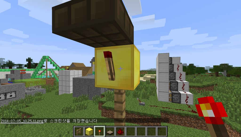 그리고 블록 바로 위에 있던 햇빛감지기를 부수고 그 자리에 레드스톤을 설치 해 줍니다.