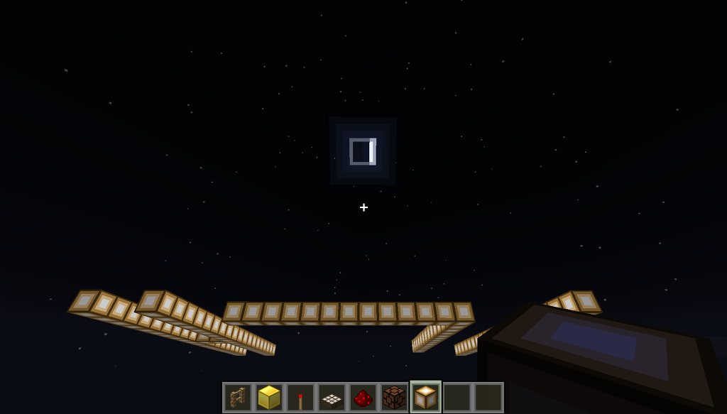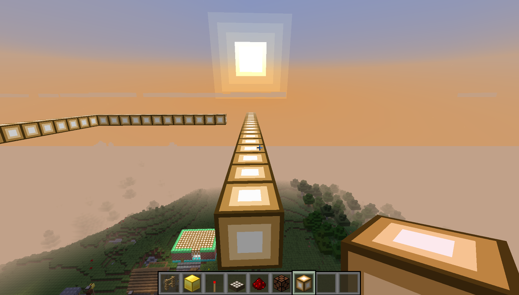 준비물입니다. 울타리, 블록, 레드스톤 횃불, 햇빛 감지기, 레드스톤, 레드스톤 램프입니다.