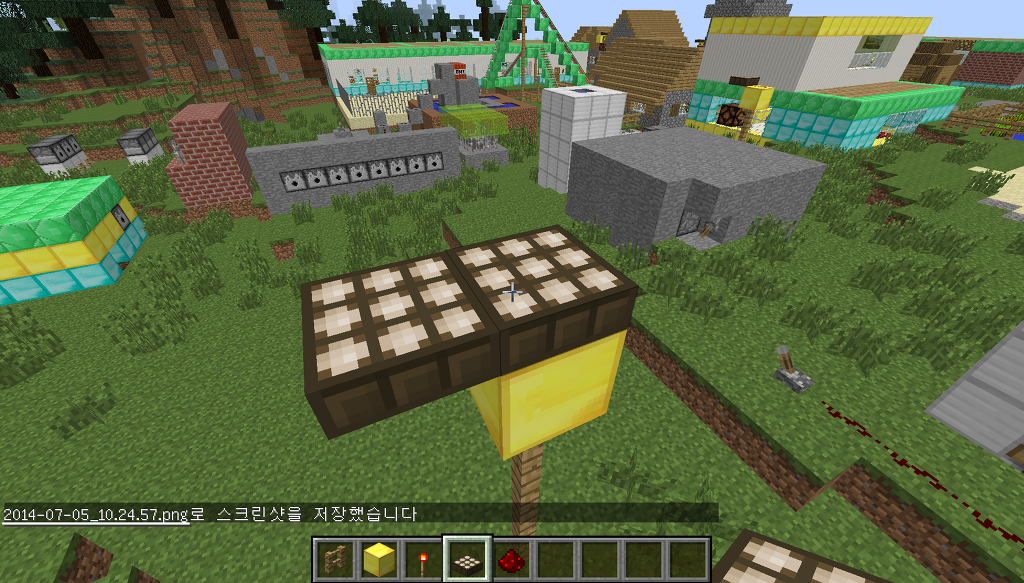 마지막으로 그 밑에 레드스톤 램프를 놓으면 완성입니다.