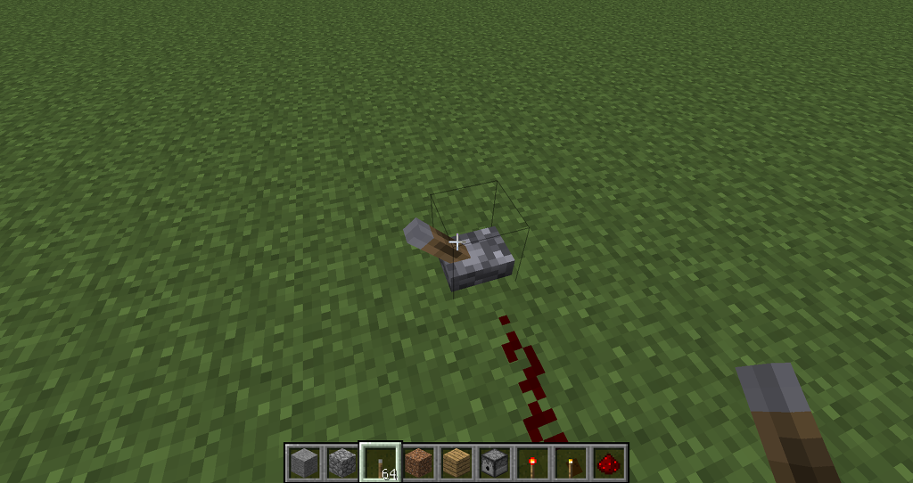 자기가 원하는 만큼 레드스톤을 길게 놔주고, 돌을 설치한 뒤, 디스펜서를 설치합시다.