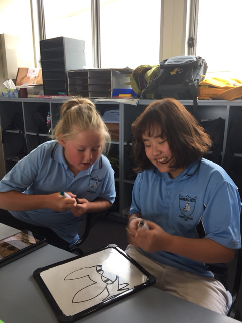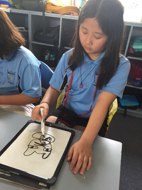 피카소 그림을 보고 처음부터 끝까지 펜을 떼지않고 그림을 그려보았습니다. 저마다 캥거루,공룡,여우 등 다양하게 표현하였습니다.