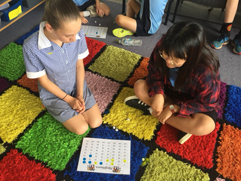 서로가 파트너를 위해 주사위를 던져준 후, 나온 숫자를 조합하여 수를 만들어 칩을 놓아 점수를 따는 게임입니다.