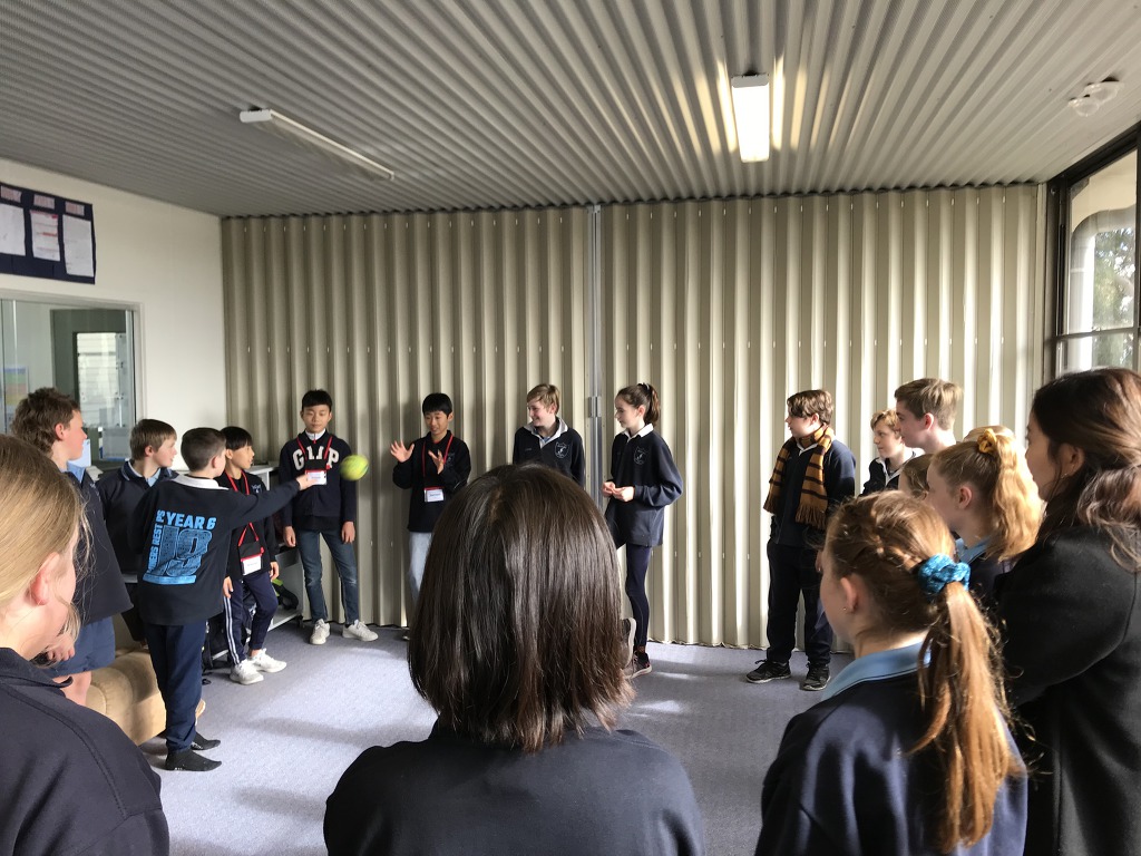 깁밥 만드는 시간 이후, 남은 수업시간 동안 학생들이 일어서서 공을 서로에게 던지며 한국말로 '몇 살이에요?' 라고 묻고, 공을 받으며 '10살 / 13살 입니다' 라는 문장을 학습하는 시간을 가졌습니다.