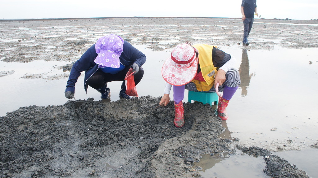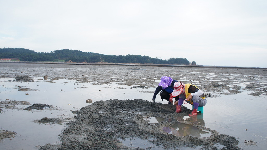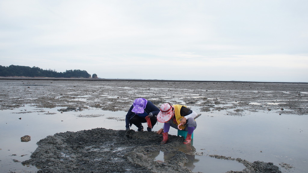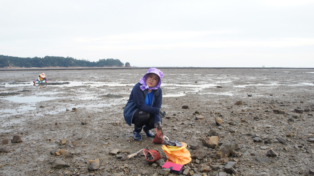 조개캐기 전문가 ... 마을 아주머니에게서 열심히 전수 받는 중 ...