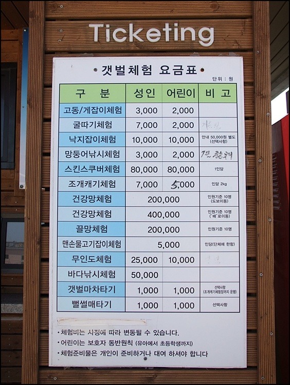 굴따기체험 . 낙지잡이체험 . 망둥어낚시체험 . 스킨스쿠버체험 . 조개캐기체험 . 건강망체험