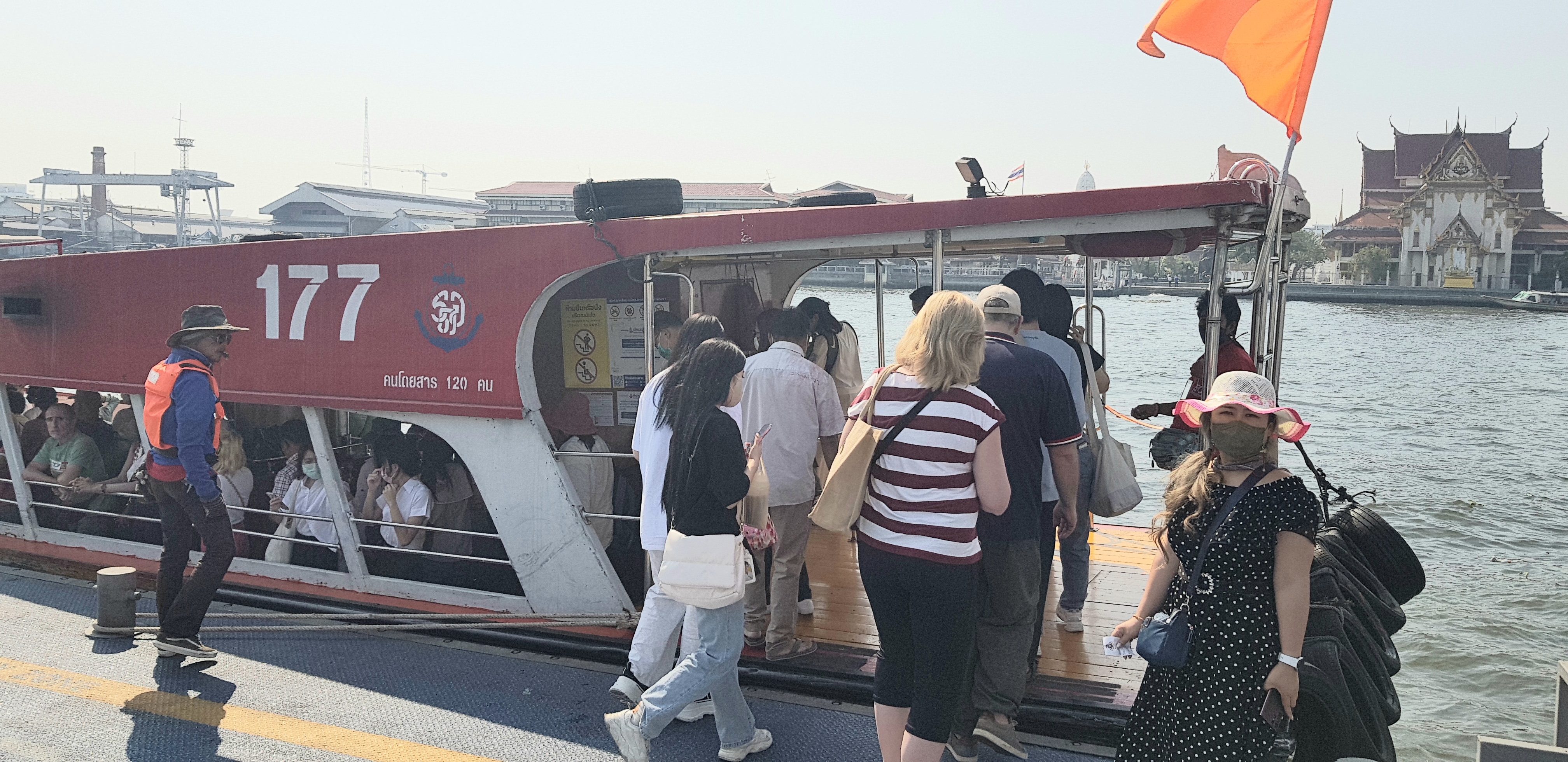 관광쇼핑을 하고 바로 옆에 있는 선착장으로 이동, 강 건너 5번째 선착장인 Rajinee 에서 Sanam Chai 지하철역이 바로 연결되네요.