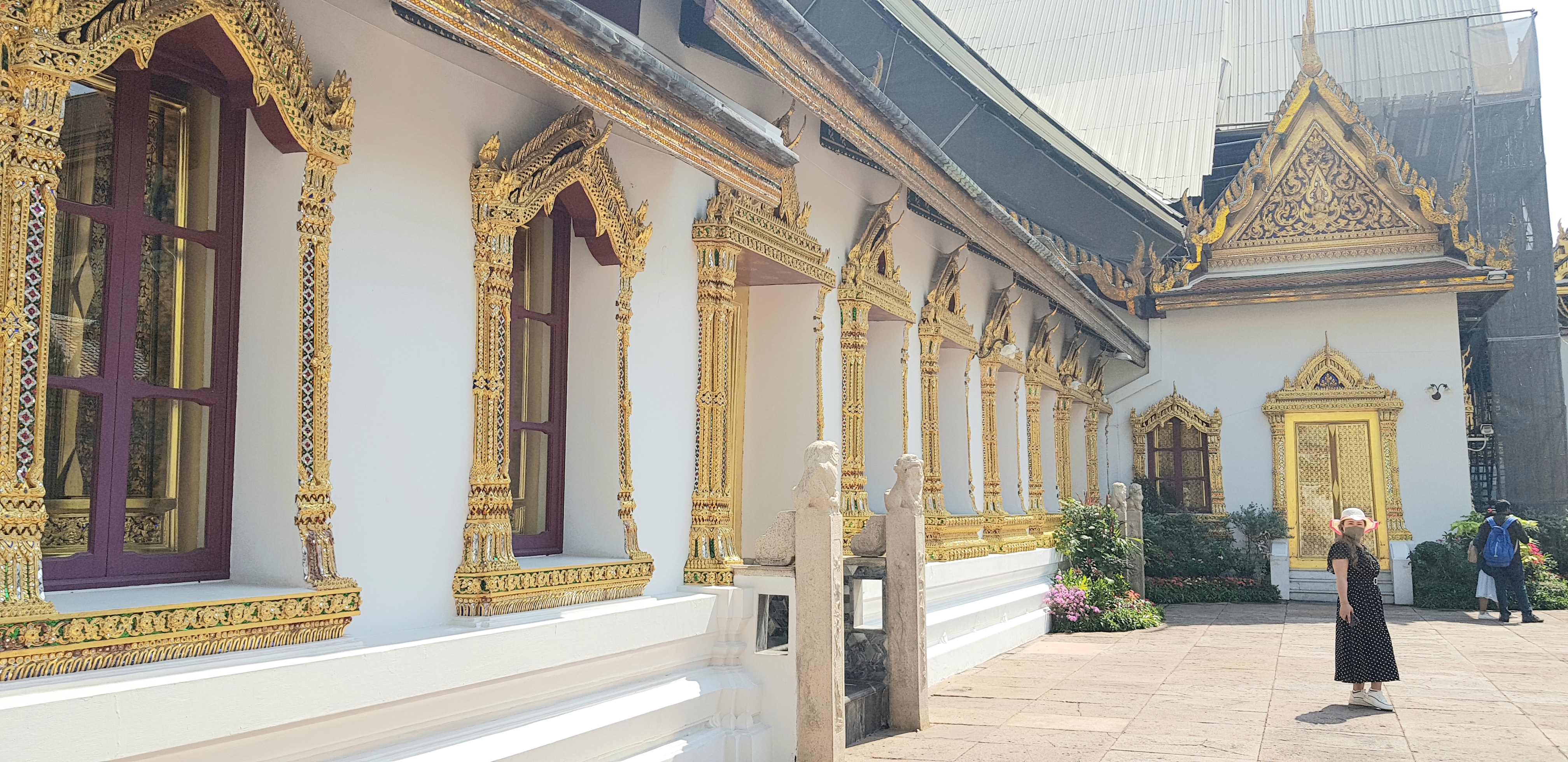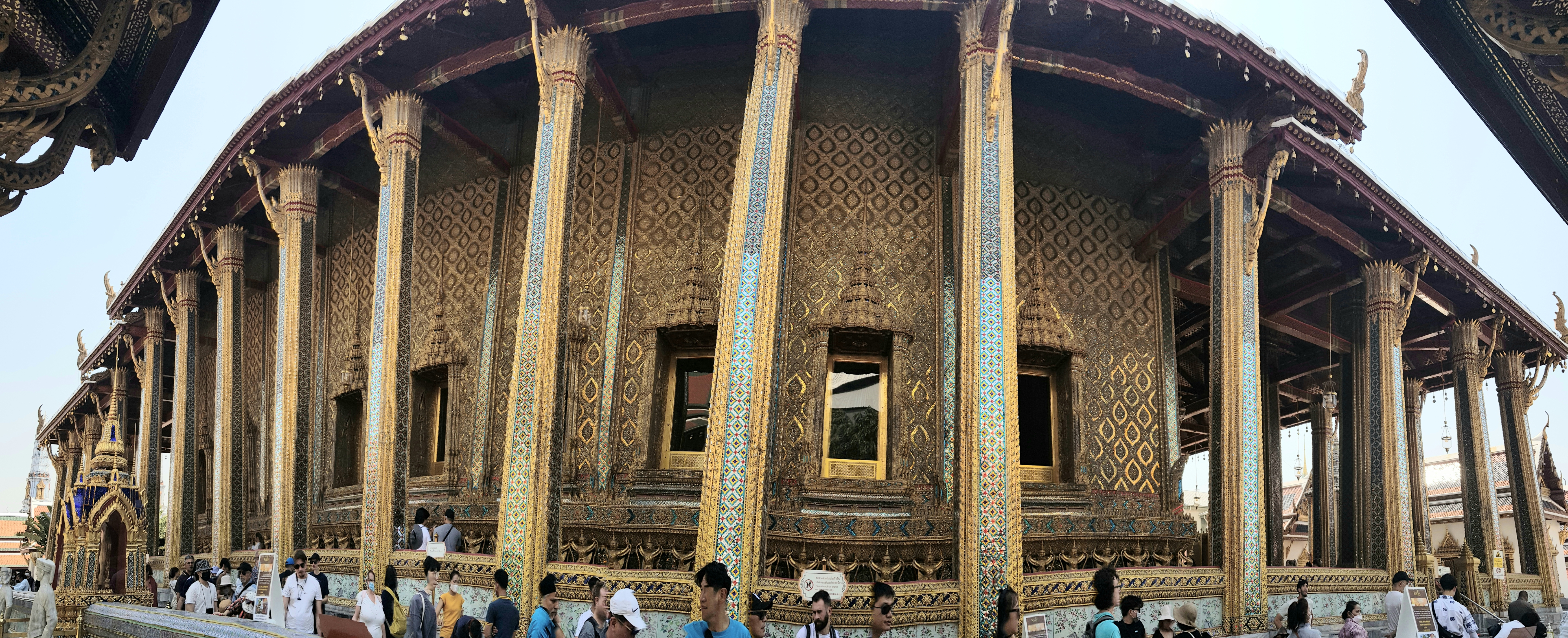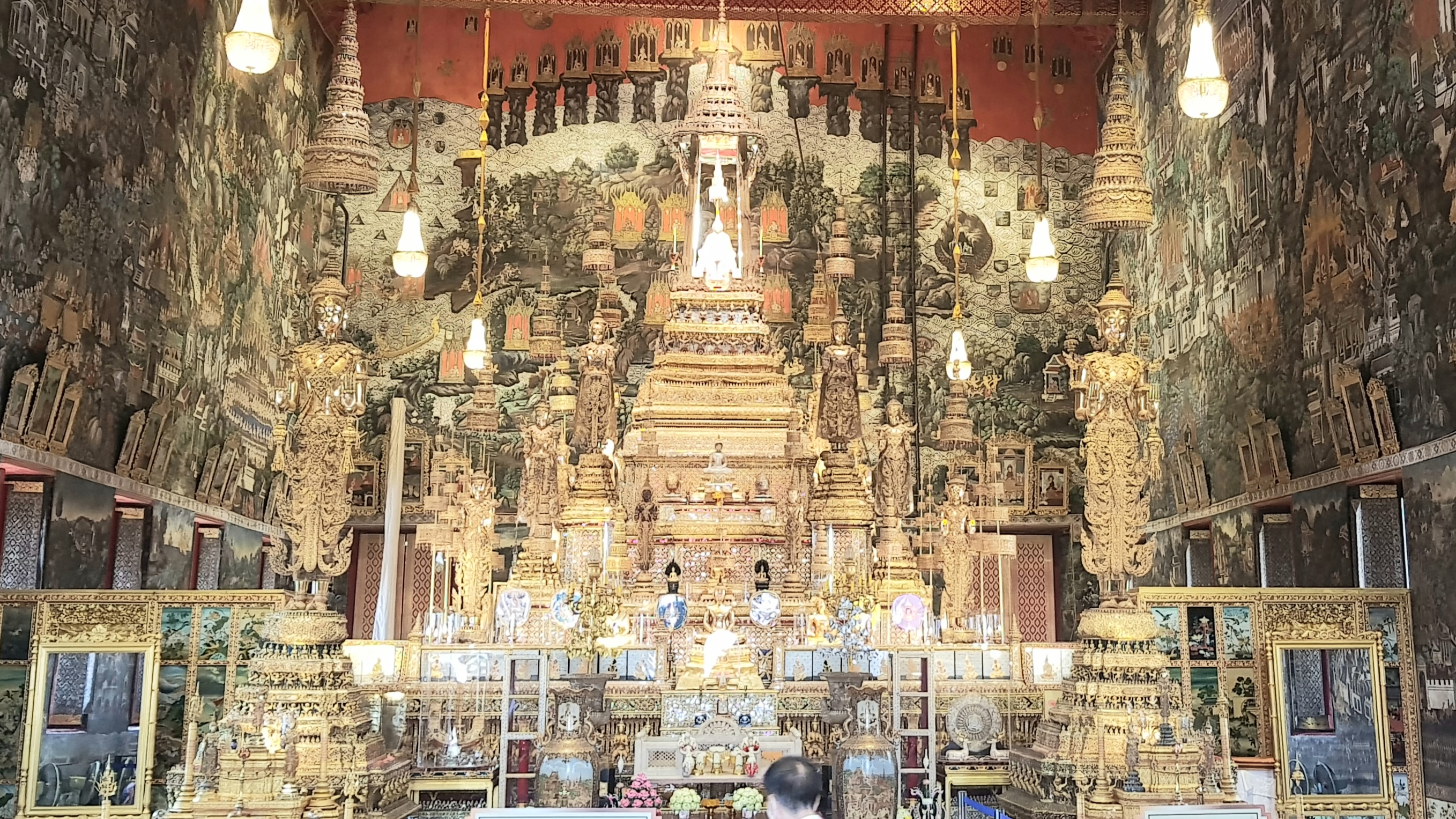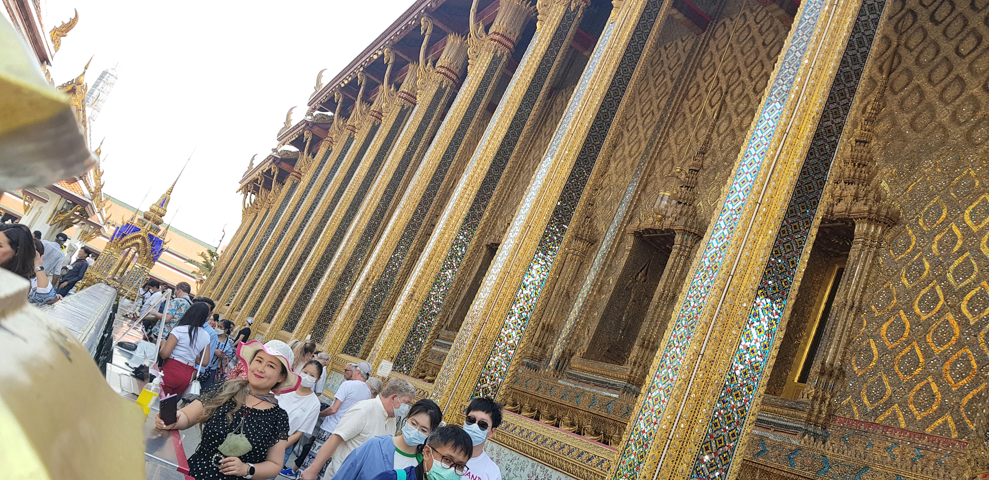 왕궁 건물에서 금색을 기반으로 화려함의 극치를 이루는 태국 전통 고유의 예술적 작품성을 봅니다.