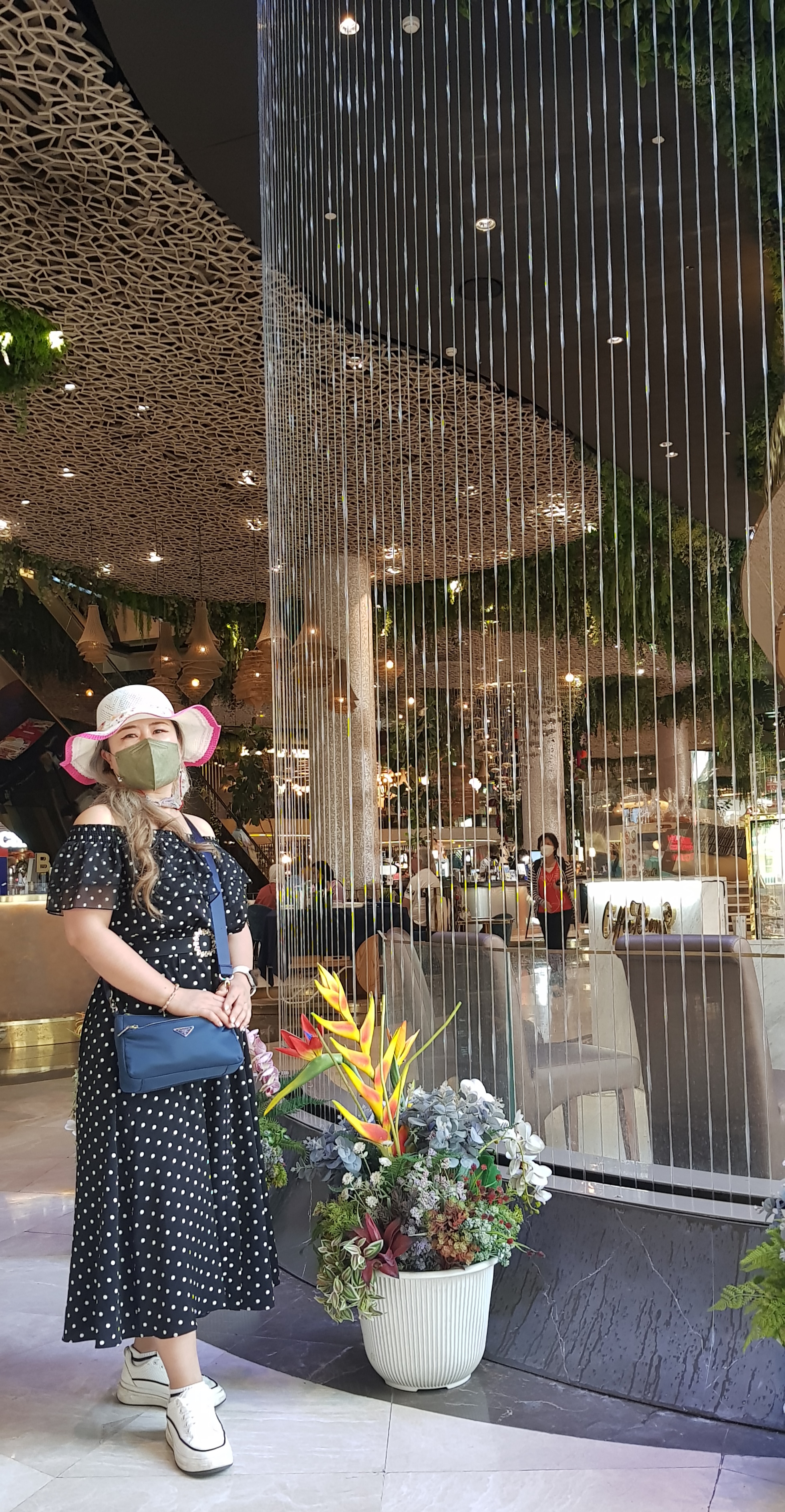 코엑스 같은 백화점에 명품샵이 즐비하고, 홀 중앙 무대 기타와 전자 피아노 연주로 가수가 팝송을 부르는데 정말 잘하네요.