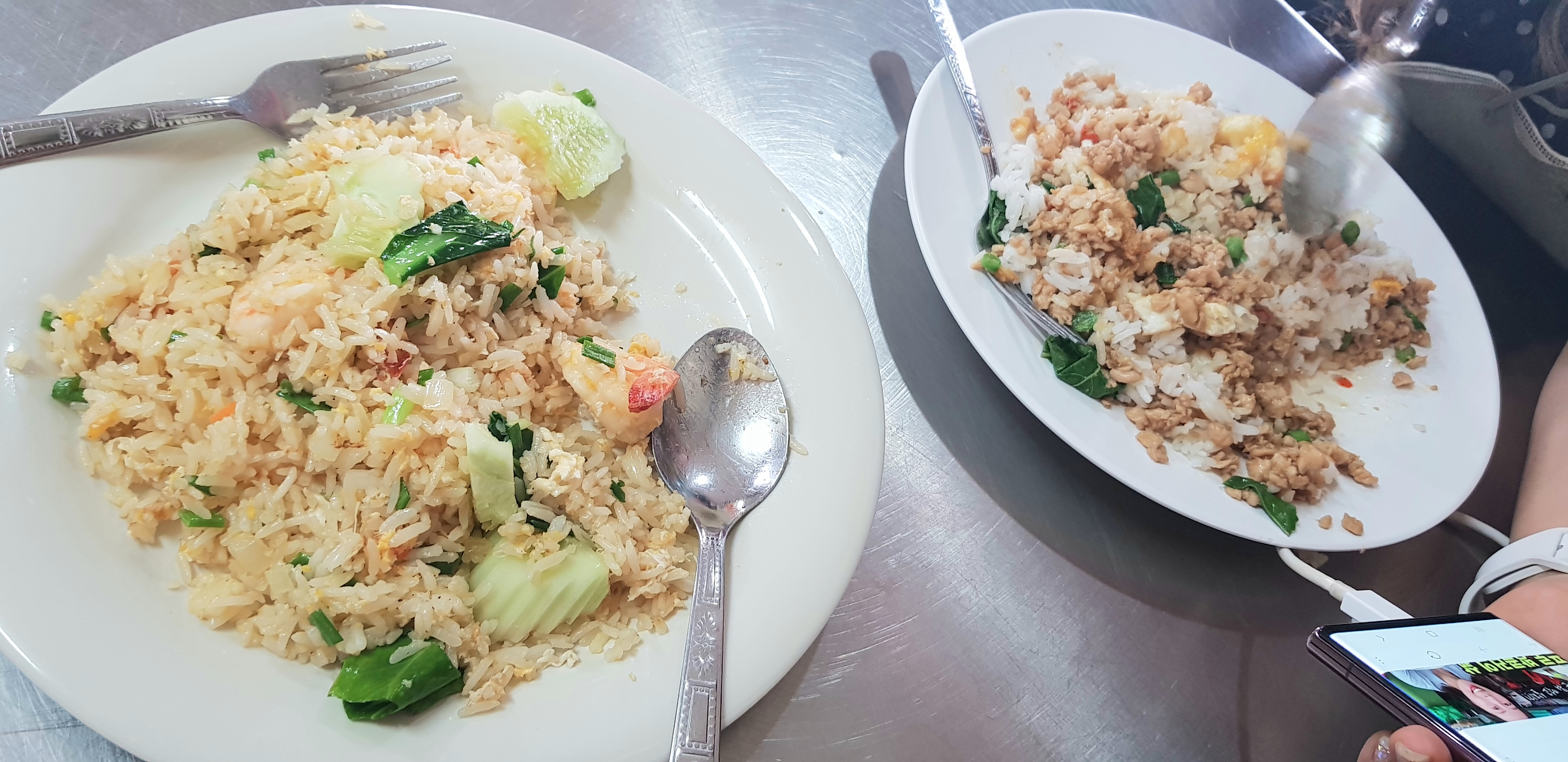 볶은 밥과 착즙 오랜지 쥬스로 허기를 달랬습니다. 가격이 800바트와 300바트네요.