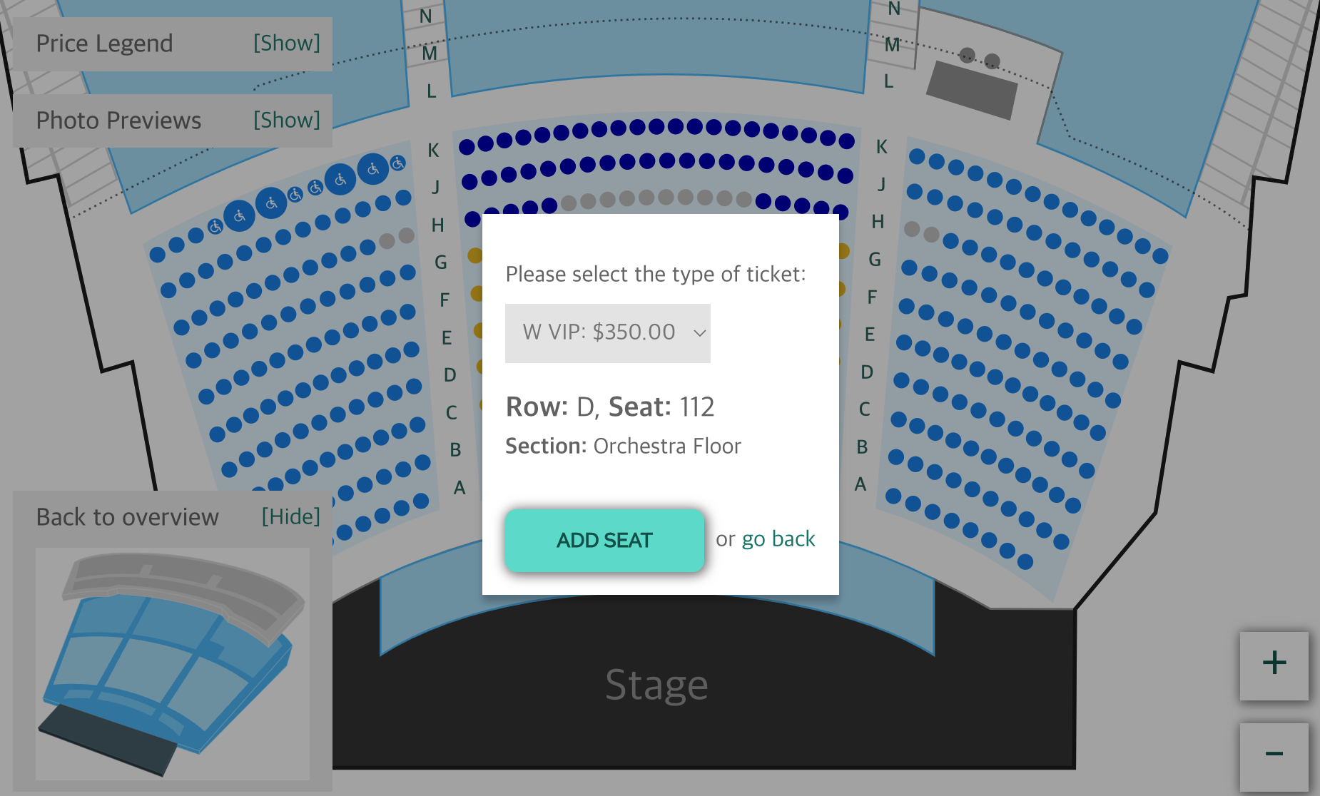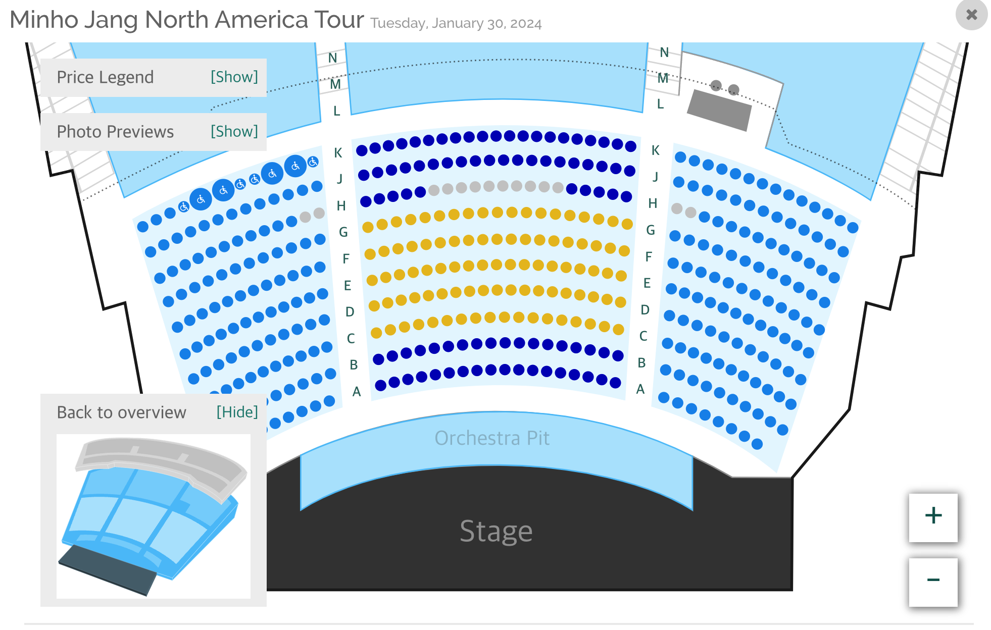 좌석 : 위치 별 상이 ($180 ~ $350) * $350 좌석에는 MEET&GREET(기념 사진 촬영) 포함