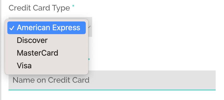 13. 결제 정보 확인 - 카드 번호를 입력해 진행하는 해외 결제입니다. / 카드 번호 입력 전 Credit Card Type 을 클릭해 결제하실 카드(마스터, 비자)를 확인해 설정합니다.
