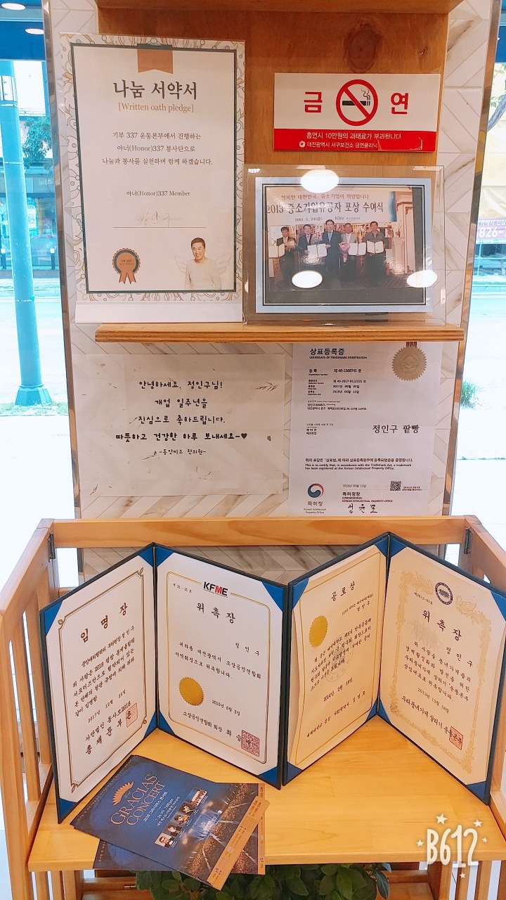 대전 가수원동 정인구 팥빵에서는 야채빵(2,000원) 버터 후렌치 (5,000원), 생크림 팥빵(2,500원) 찹쌀떡(1,500원), 황남빵(1,500원, 유기농버터식빵(2,500원), 초코식빵(3,500원), 유기농 옥수수식빵(2,500원)