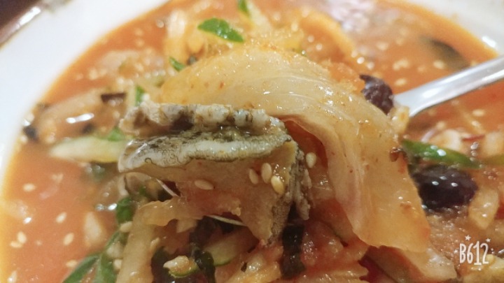 물회는 중 으로 시켰는데 7명이 나누고도 조금남네요!!