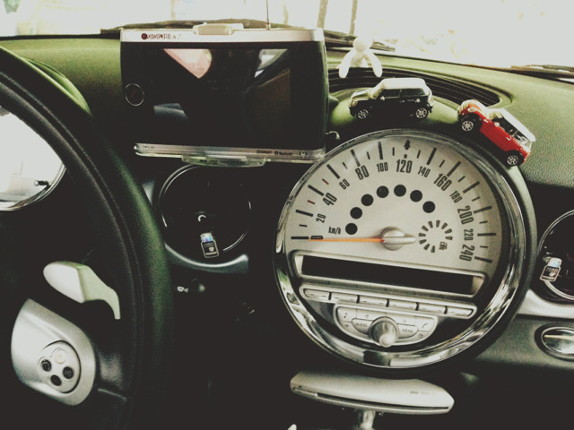 쿠다거치대랑 벨킨에어캐스트 설치 했습니다. 준비물은 안쓰는 신용카드 한장과 양면 테입 (거치대와 회전마운트 및 아이나비 젠더는 드라이버와 나사, 양면테입 이용 부착) 으로 선정리및 부착을 완료 했습니다. 어느 글에선가 트림을 제거하지 않고 쿠다를 설치 할 수 있다는 글을 보고 조심스러운 마음으로 안쓰는 신용카드 한장으로 먼저 살살 밀어넣고 틈을 만들어 쿠다를 밀어서 부착 했습니다.