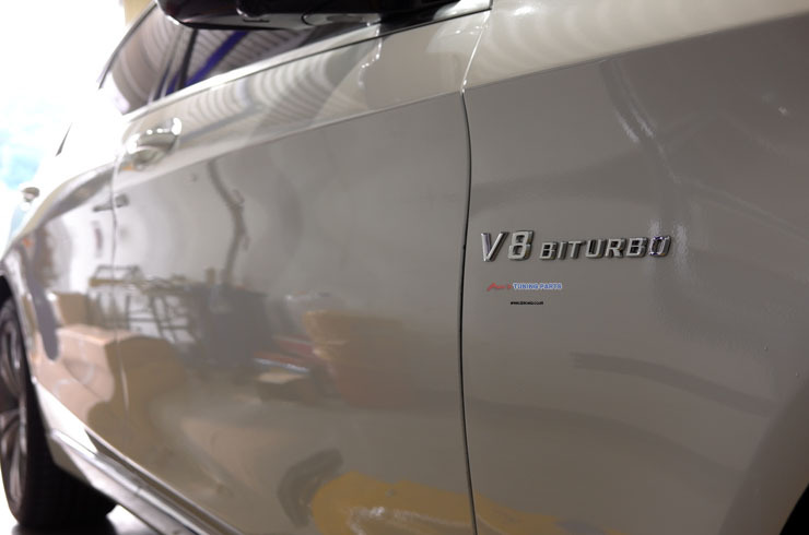 V8 바이터보 로고가 사이드휀다에 붙어 있습니다. 신형 바이터보 엔진들의 경우 예전의 NA엔진이나 슈퍼차져 엔진에 비하여