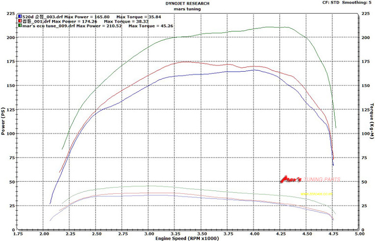 마르스ECU맵핑 휠마력 210.52 hp, 토크 45.26 kg.m 로