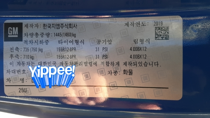 운전석 문열면 옆면에 스티커 붙어 있습니다.