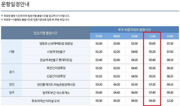 (후포행 버스 영등포 신세계백화점 정문앞 05:00 출발)