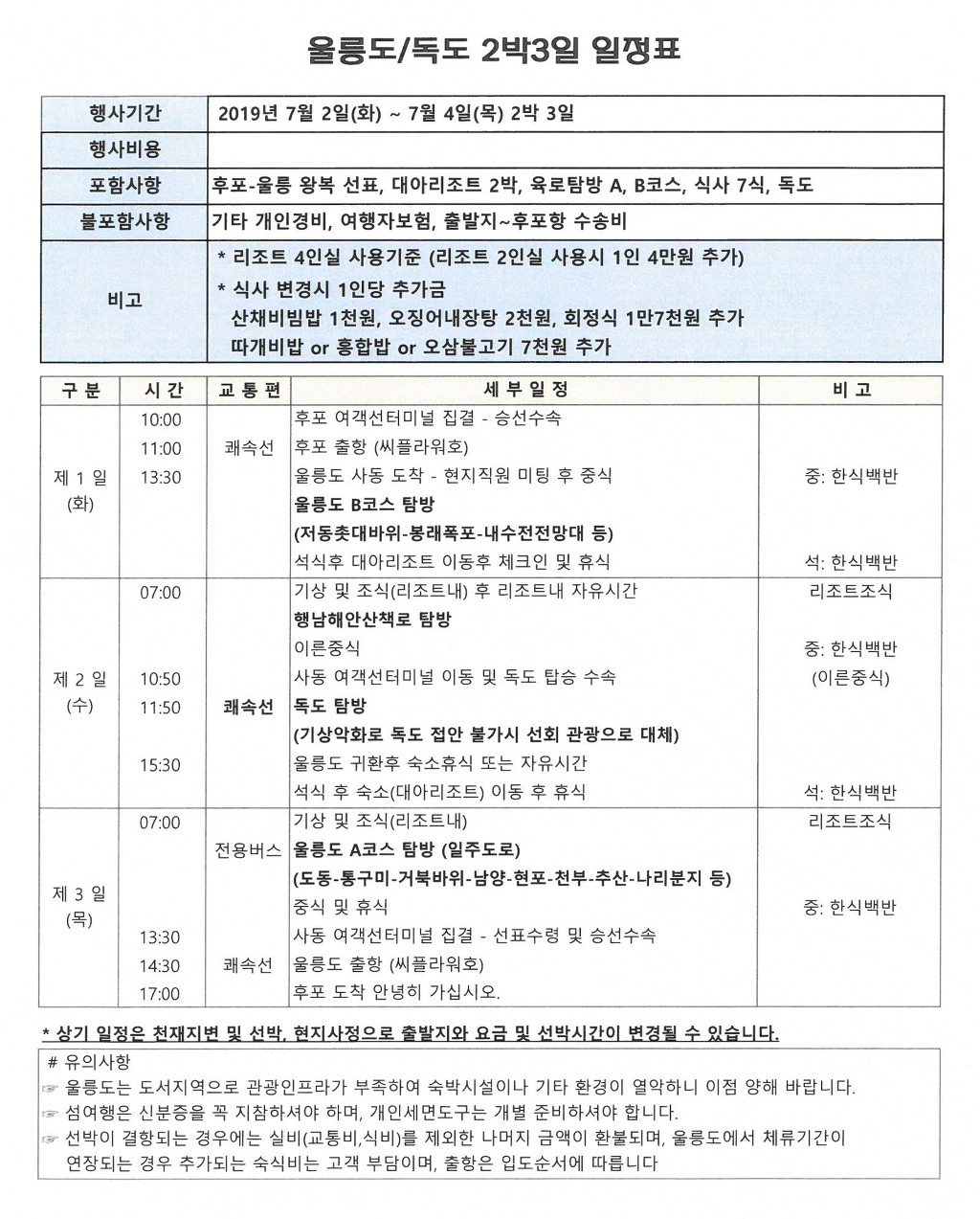 ◈ 울릉도까지의 최단시간 2시간30분 소요로 편안한 일정입니다.