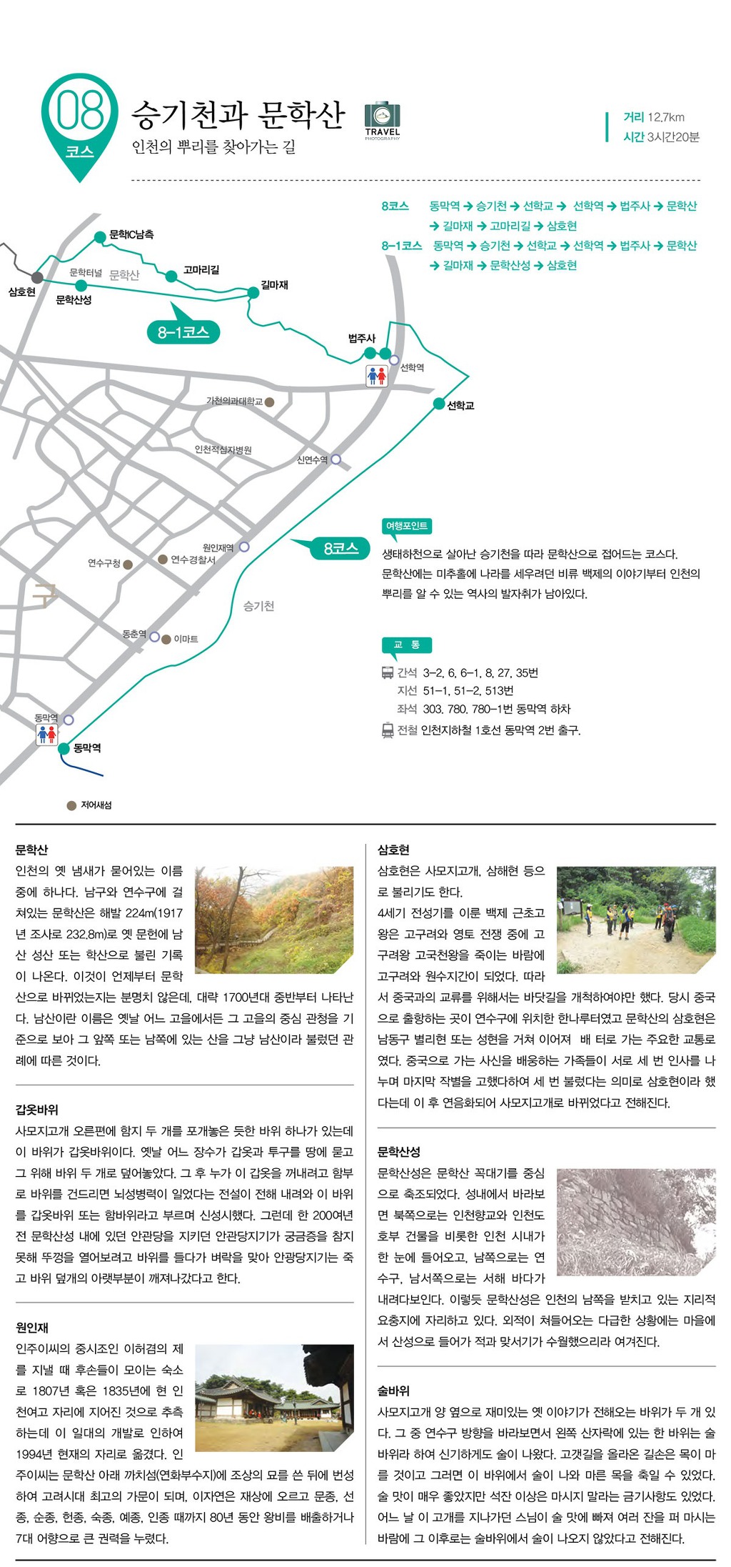 08코스(승기천.문막산) 12.7km/03:20 : 동막역→승기천→선학역→문학산(길마재→고마리길→삼호현)