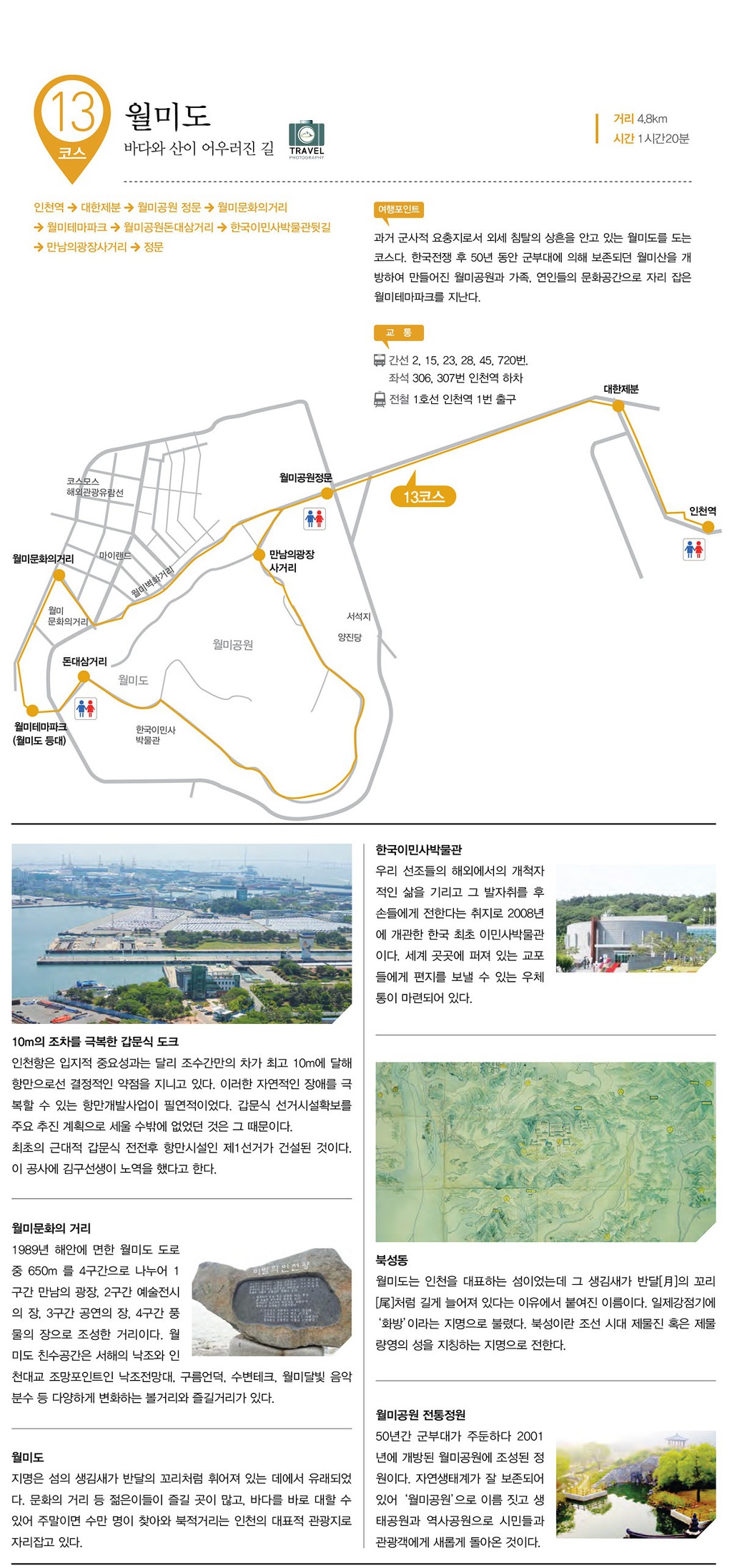 13코스(월미도) 04.8km/01:20 : 인천역→대한제분→월미공원 정문→월미문화의 거리→월미테마파크→월미공원(돈대삼거리→한국이민사박물관 뒷길→만남의광장 사거리→정문)