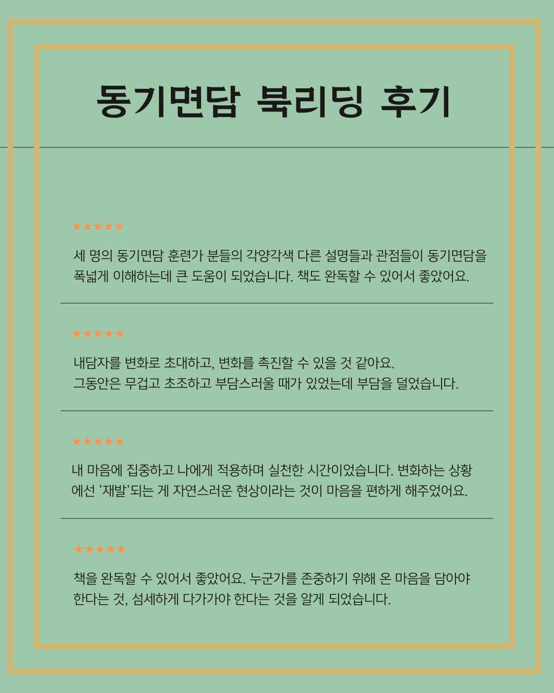 * 본 북리딩은 책을 미리 함께 읽고, 북리딩에서 나누고, 실습해 보는 과정을 통해 동기면담에 익숙해지는