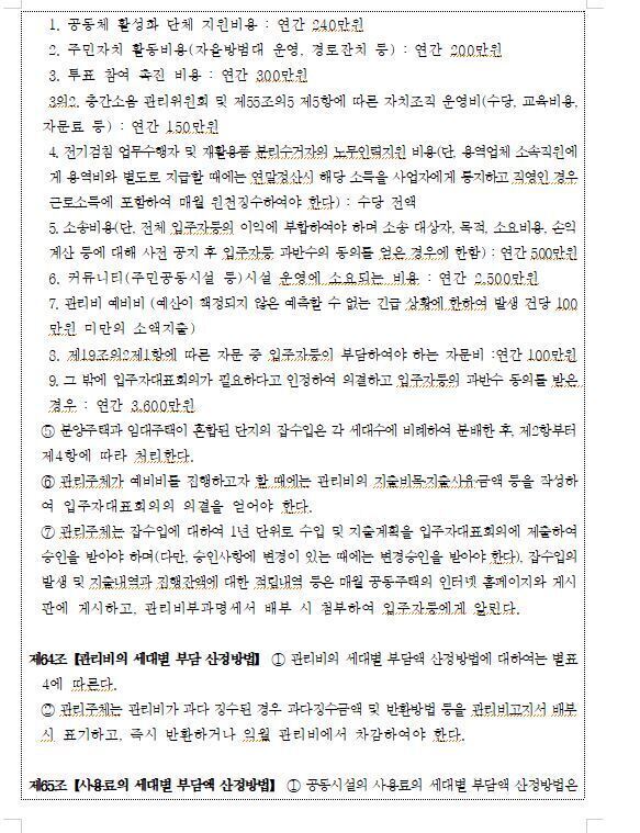 | 질문 : 1. 영 제26조제3항 및 당 아파트 관리규약 제63조에 따라 당해연도(21년도) 잡수입 중 우선 사용한 금액을 제외한 나머지 금액은 다음 회계연도(22년도) 기간 중에 관리비에서 차감하고자 합니다. 2. 위호와 관련하여 관리비 차감시 차감기간에 관하여 아래와 같이 질의 하오니 내용을 검토하시고 관계법령과 규정에 적정한 방법을 강구·회신하여 주시기 바랍니다. - 아 래 - 가. 잡수입을 2월 결산 후 주택공급면적에 따라 1개월에 전액 차감 나. 잡수입을 2월 결산 후 주택공급면적에 따라 11개월에(2월~12월) 걸쳐 균등·분할 차감 다. 위의 두가지 방법 중 어느 것이 적정한 지 질의합니다. 답변 : 안녕하십니까. 중앙공동주택관리지원센터입니다. 국민이 행복한 아파트 생활을 위해 최선을 다하겠습니다. 고객님께서 인터넷(홈페이지)를 통하여 문의하신 사항에 대하여 아래와 같이 답변 드립니다. 공동주택관리법 시행령 제19조 제1항 제18호에 따라 관리 등으로 인하여 발생한 수입의 용도 및 사용절차는 시·도지사가 정하는 관리규약 준칙에 포함되는 사항으로 동 준칙을 참조하여 해당 공동주택에서 관리규약으로 정하여 운영하도록 규정하고 있어, 질의의 경우 결산한 관리비차감적립금의 다음 회계연도 관리비 차감기간은 위의 법령에 따라 해당 공동주택에서 제반 여건 등을 고려하여 합리적으로 판단하여 결정할 사항으로 사료됩니다 다만, 관리비차감적립금이 직전 회계연도 전체에 걸쳐 발생하고, 입주자와 사용자 모두의 공평한 이익을 위하여 사용해야 하는 점 등을 고려할 때 관리비차감적립금의 차감방법 및 차감기간은 매 회계연도 계속성을 유지하는 것이 합리적일 것으로 판단되니 참고하시기 바랍니다. 회신 내용에 대해 추가로 궁금하신 사항이 있으시면 전화(031-738-5193)나 홈페이지(http://myapt.molit.go.kr)로 문의하시면 성실하게 답변 드리겠습니다 참고로 공동주택 관리에 관해 「자주 묻는 질문」은 중앙공동주택지원센터→민원상담→자주 묻는 질문에서 찾아볼 수 있음을 알려드립니다. 건강 유념하시고 행복한 하루되시기 바랍니다. 감사합니다. ※ 본 답변은 고객님께서 제시한 자료만을 근거로 작성하였으며, 법적 효력을 갖는 유권해석이 아니므로 각종 신고, 불복청구 등의 증거자료로서의 효력은 없을 수 있습니다. |
