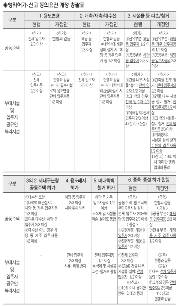 ※ 참고로 국토교통부 발간 「공동주택 행위허가신고 실무 가이드라인」(2021.3.) p43. 을 살펴보면 공동주택 옥상에 이동통신구내중계설비 설치 시 동의기준에 대하여 “입주자대표회의의 동의를 받아 시장·군수·구청장에게 행위신고를 통해 가능”하다고 답변드리고 있는 점 참고하시기 바랍니다.