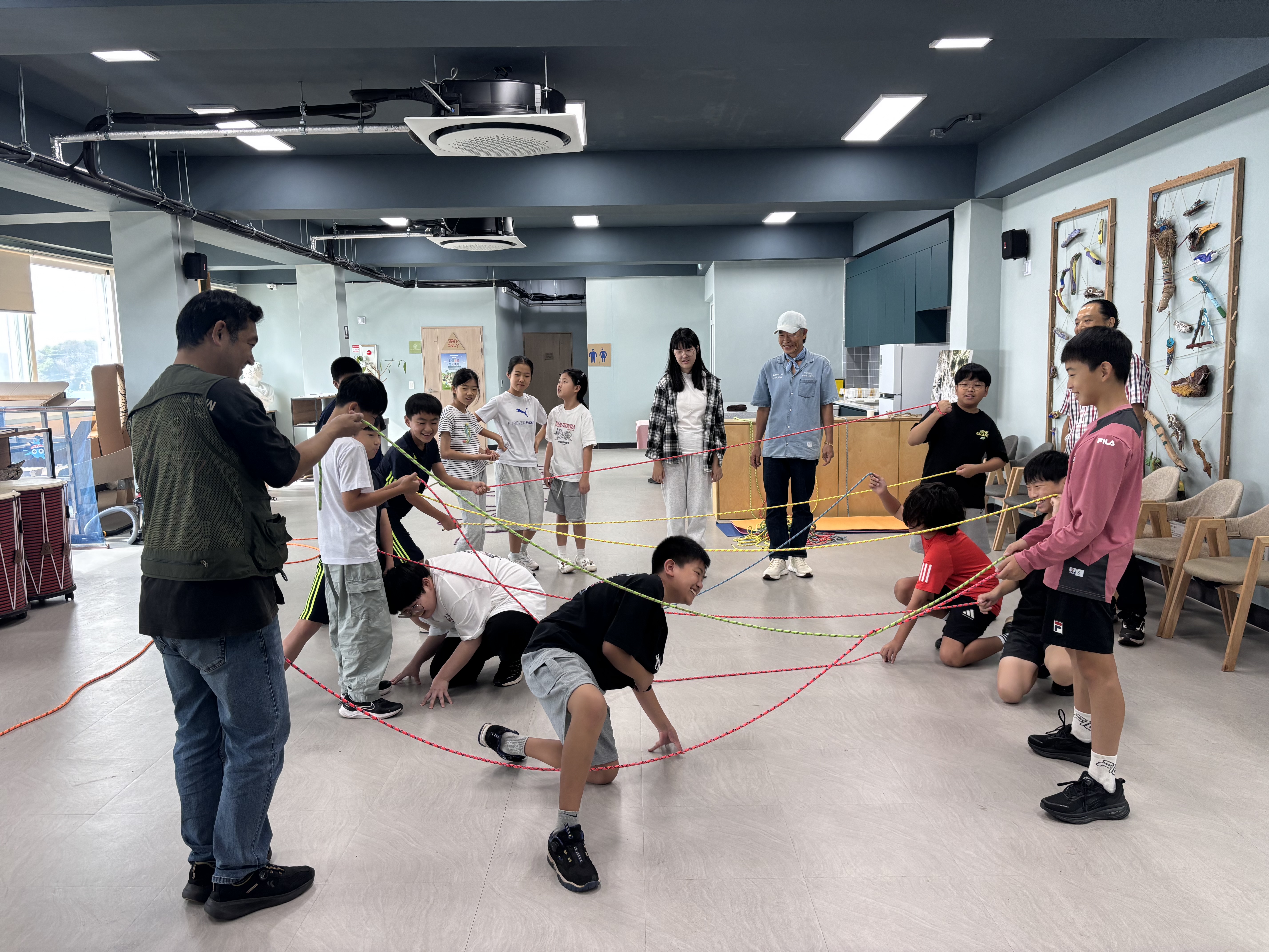 5~6학년은 하례2리 노인회관 ‘수둠모루’에서 숲밧줄 놀이 재료를 활용해 밧줄 통과하기, 매듭짓기, 공동체 놀이 등 다양한 활동을 진행하며 협력과 배려의 가치를 익혔다.