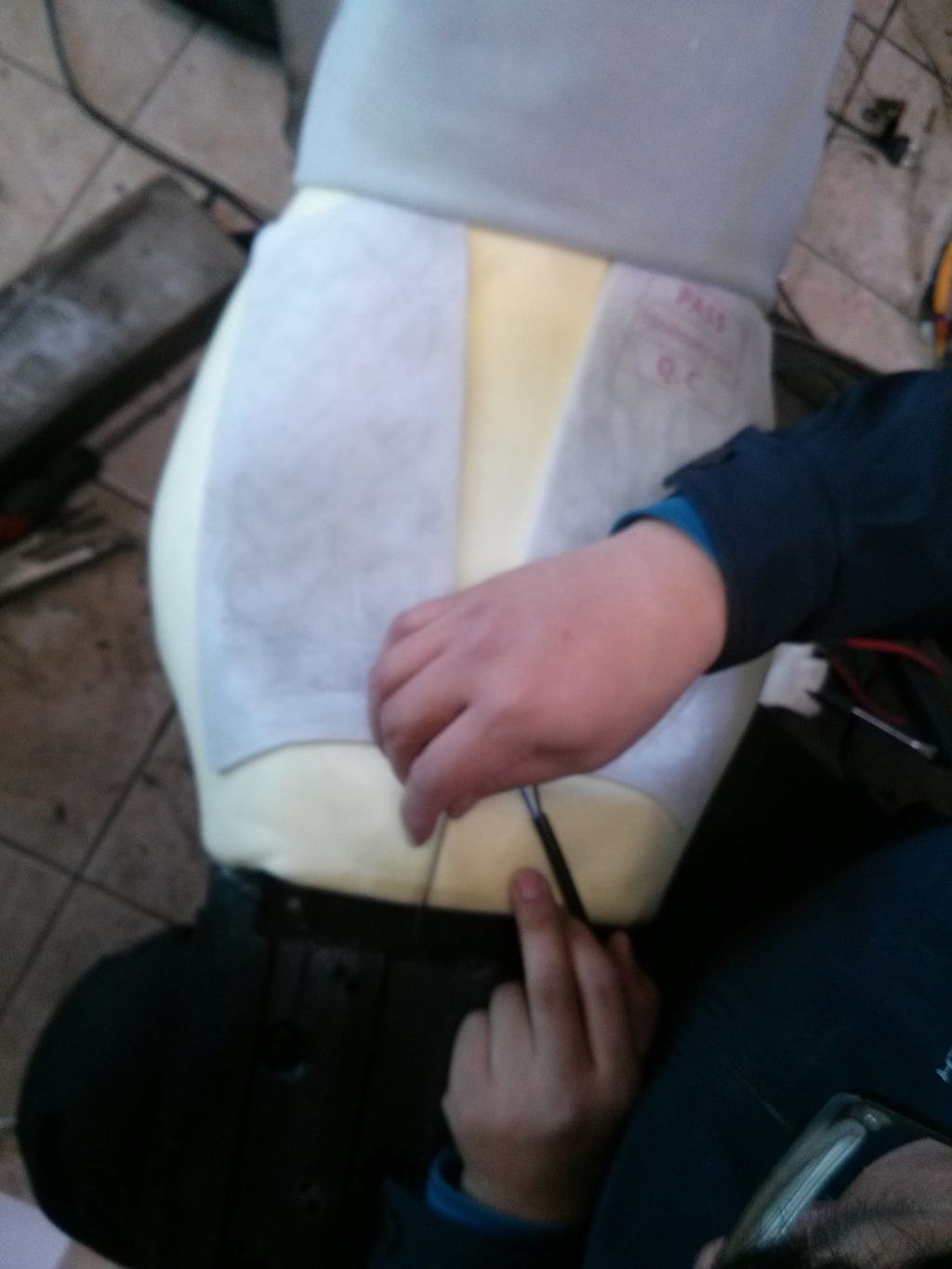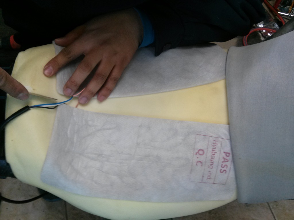 시트를 탈거 하고 열선을 안착시킨 후 자리를 잡고 있는 모습입니다.