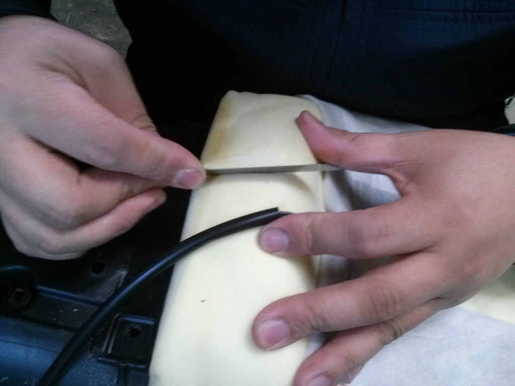 엉덩이 전선이 느껴지지 않도록 하기 위해 시트를 조금 파내어 전선을 넣습니다.