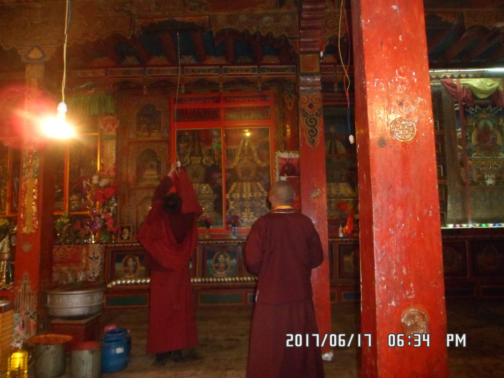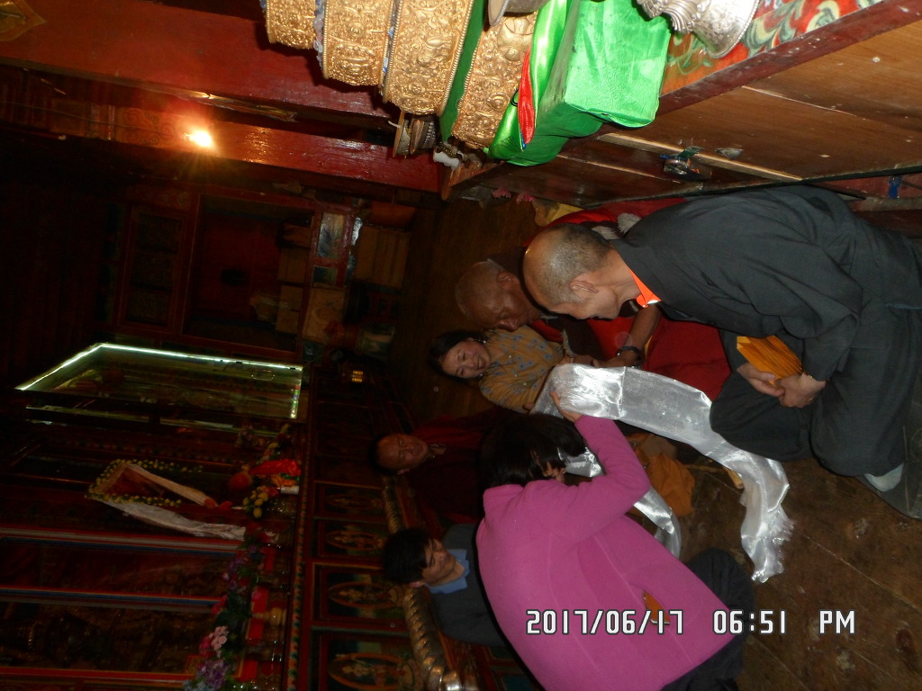 연화생대사님에게 인사를 드리고 모두들 녠롱상스님의 삼촌이시며 190센티은 되실듯한 거구의 아바대사님께 하다를 올리며