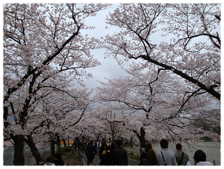 우산을 쓰고라도 꽃구경을 한다.....장하다.....