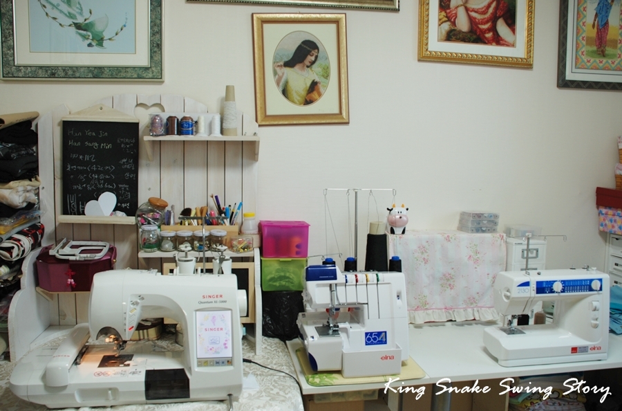 작성자왕뱀 작성자 본인 여부 작성자 작성시간 09.01.10 작업실이라고 하기 민망해요...ㅡㅡ;; 미싱쓰는 방은 정리가 안되네여..깔끔덩어리 신랑은 매일 속만 태우죠머..ㅎㅎ