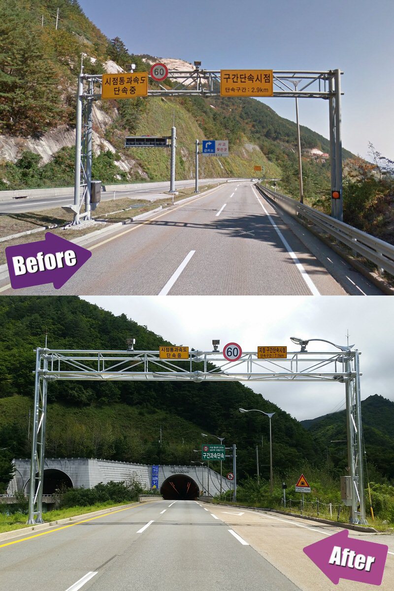 구간과속단속 시점, 변경전(Before)과 변경후(After)