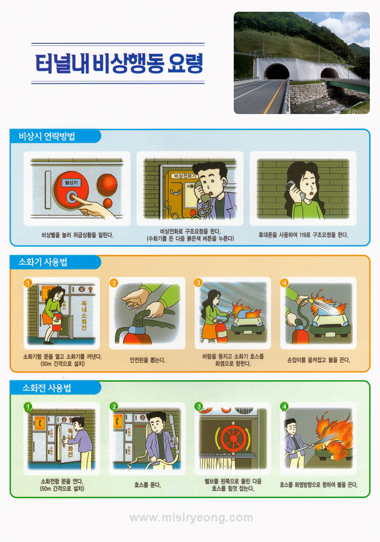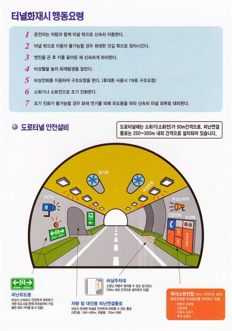 아래에 소개드리는 미시령터널 내 방재 설비와 비상 시 행동 요령은 전국 대부분의 장대터널에서 공통적으로 적용가능합니다.