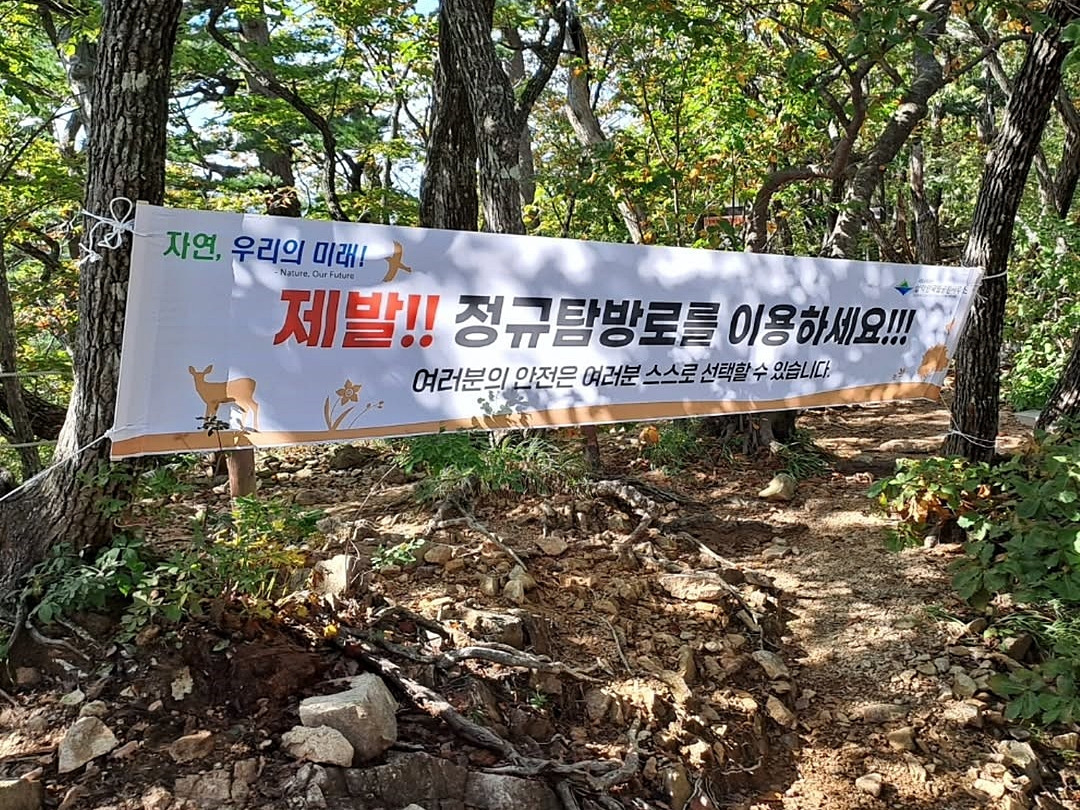 미시령은 설악산국립공원의 백두대간 구간에 자리 잡고 있으며, 해발 고도가 높아 주변의 웅장한 산세와 계곡을 감상할 수 있는 매력적인 장소입니다. 특히, 미시령 정상에서 북쪽으로는 상봉, 신선봉, 대간령으로 이어지는 구간, 그리고 남쪽으로는 황철봉, 저항령, 마등령으로 연결되는 구간은 백두대간 종주를 꿈꾸는 등산객들에게 큰 매력을 뽐내는 경로입니다. 하지만 이들 구간은 정식으로 개설된 법정 탐방로가 아닌 '비법정 탐방로'입니다. 비법정 탐방로는 국립공원 관리 당국에서 공식적으로 허가하지 않은 경로로, 이곳에서의 등산은 법적으로 금지되어 있습니다. 이는 단순한 규제가 아니라, 자연 생태계 보호와 등산객의 안전을 보장하기 위한 필수적인 조치입니다. 설악산국립공원은 우리 모두가 지켜야 할 소중한 자연 유산입니다. 백두대간의 장엄한 산맥과 그 속에 깃든 생명체들은 우리의 세심한 배려와 보호가 필요합니다. 비법정 탐방로 출입은 단순한 모험심을 충족시키기 위한 행동이 아니라, 자연과 미래 세대에까지 영향을 미치는 중대한 문제입니다. 등산객 여러분께서는 규정을 준수하고, 법정 탐방로를 통해 설악산의 아름다움을 안전하고 책임감 있게 즐겨 주시길 간곡히 부탁드립니다.