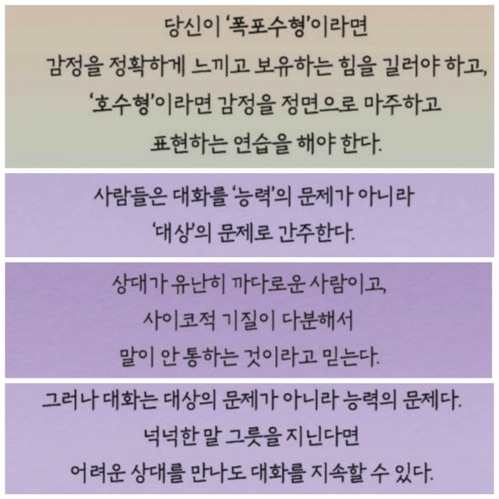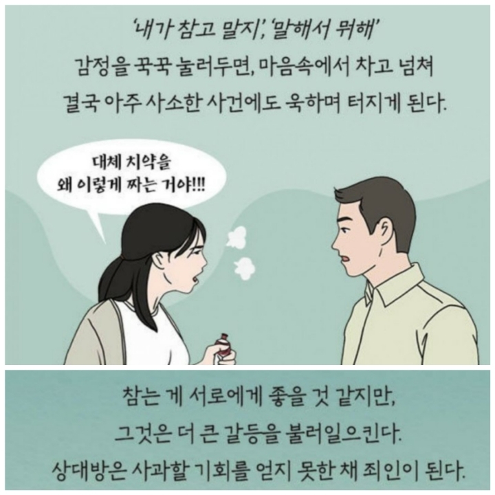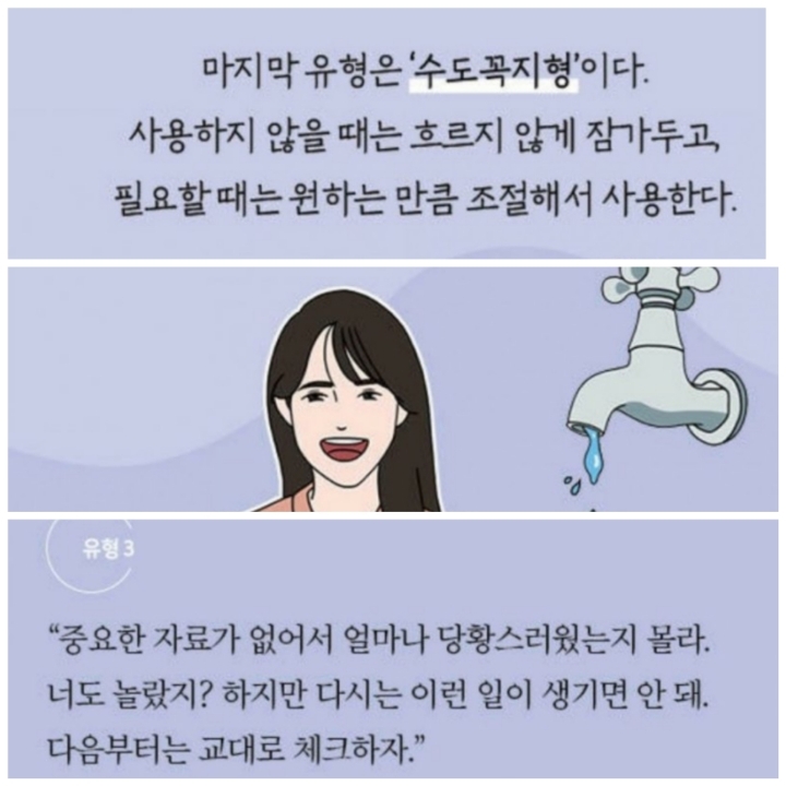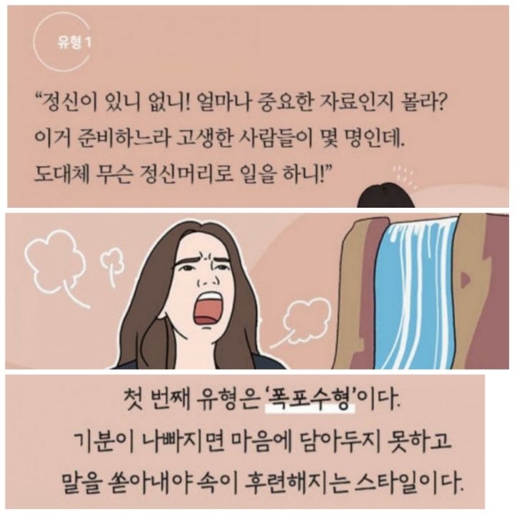 감정표현 3가지 유형 1.폭포수형 2.호수형 3.수도꼭지형 작성자쾌남(허준혁)|작성시간20.01.21|조회수516 목록 댓글 0 글자크기 작게가 글자크기 크게가 . 다음검색 현재 게시글 추가 기능 열기 북마크 공유하기 신고 센터로 신고 댓글 댓글 0 댓글쓰기 답글쓰기 댓글 리스트