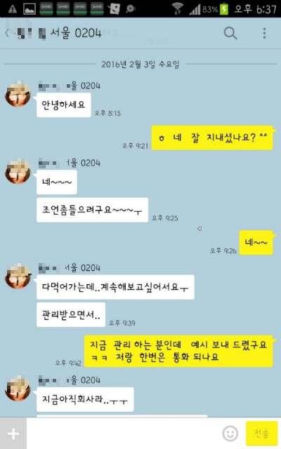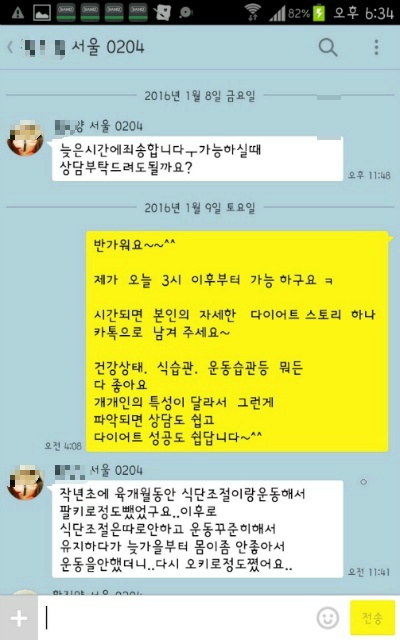 직장이 늦게 끝나는 분이라 그때 상담을 카톡으로 했는데