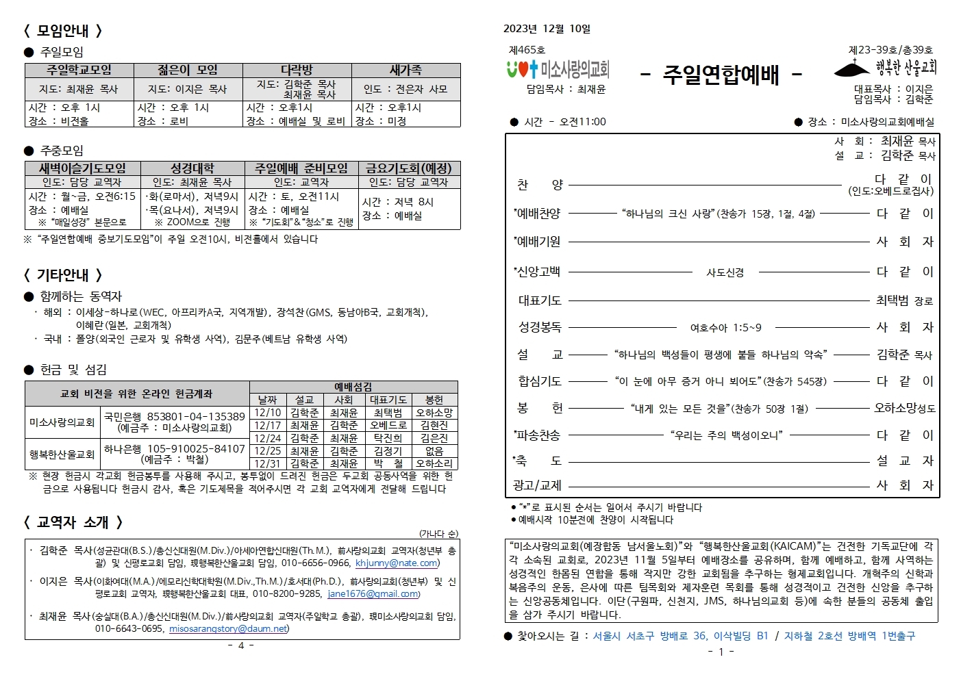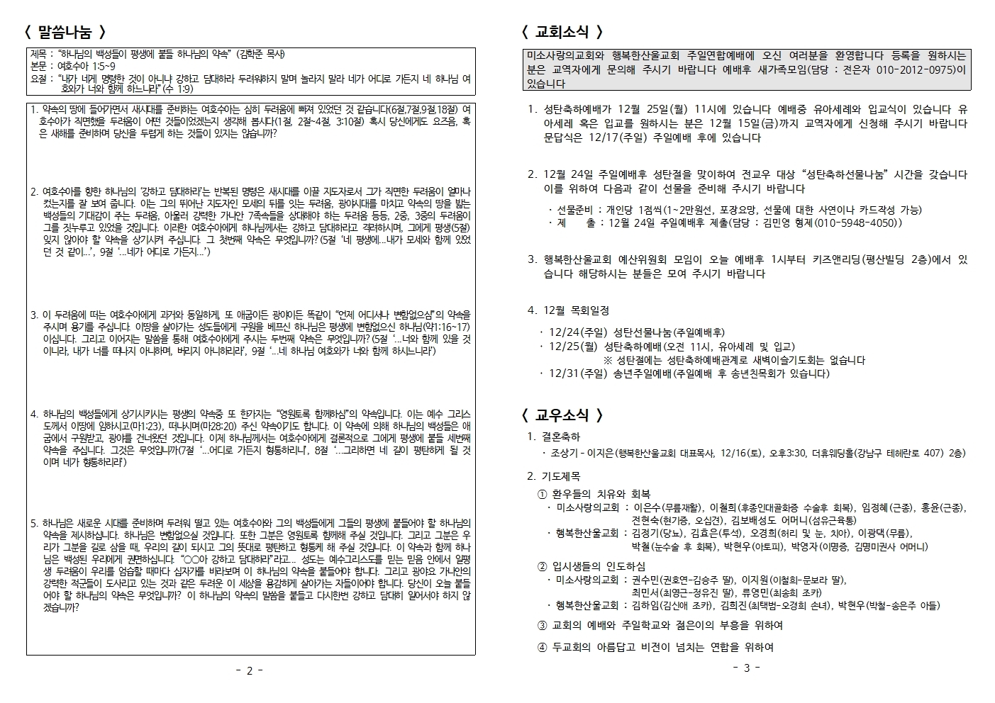| 제목 : “하나님의 백성들이 평생에 붙들 하나님의 약속” (김학준 목사) |